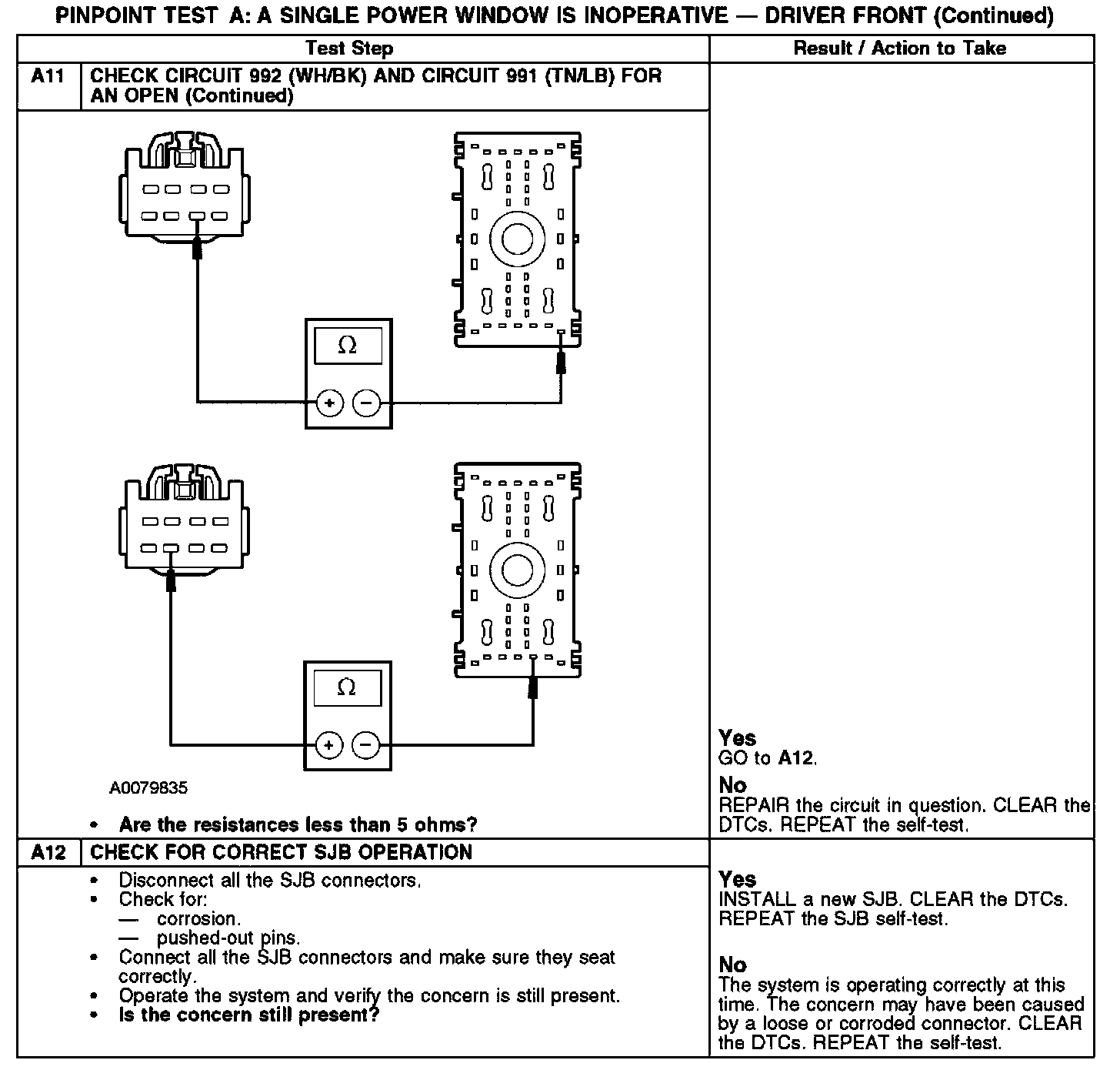 - Circuit 992 (WH/BK) open, short to voltage or short to ground