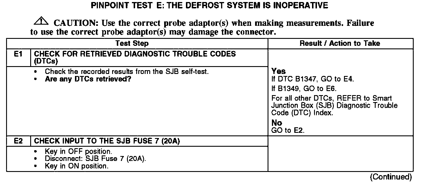 PINPOINT TEST E: THE DEFROST SYSTEM IS INOPERATIVEE1-E2: