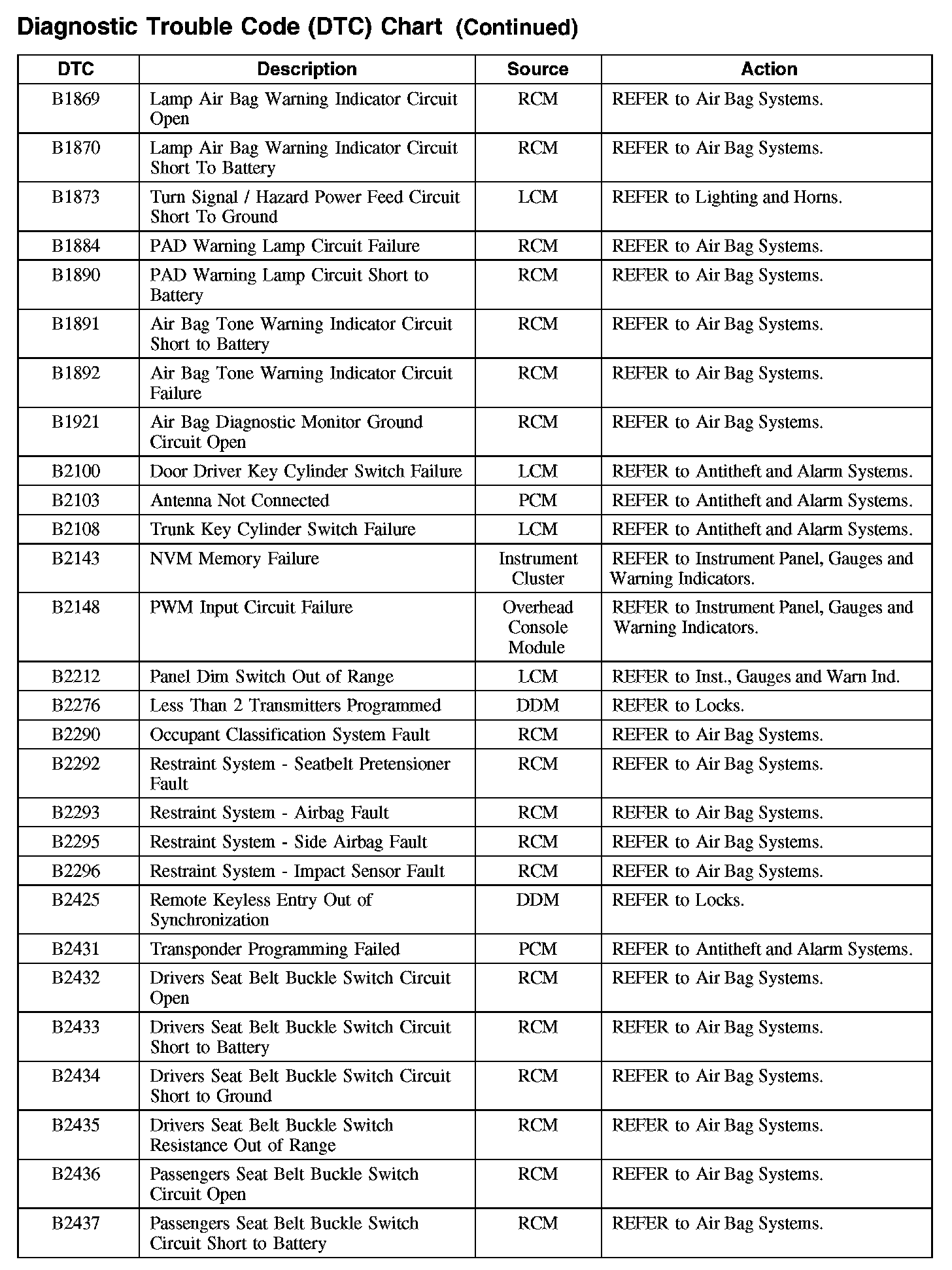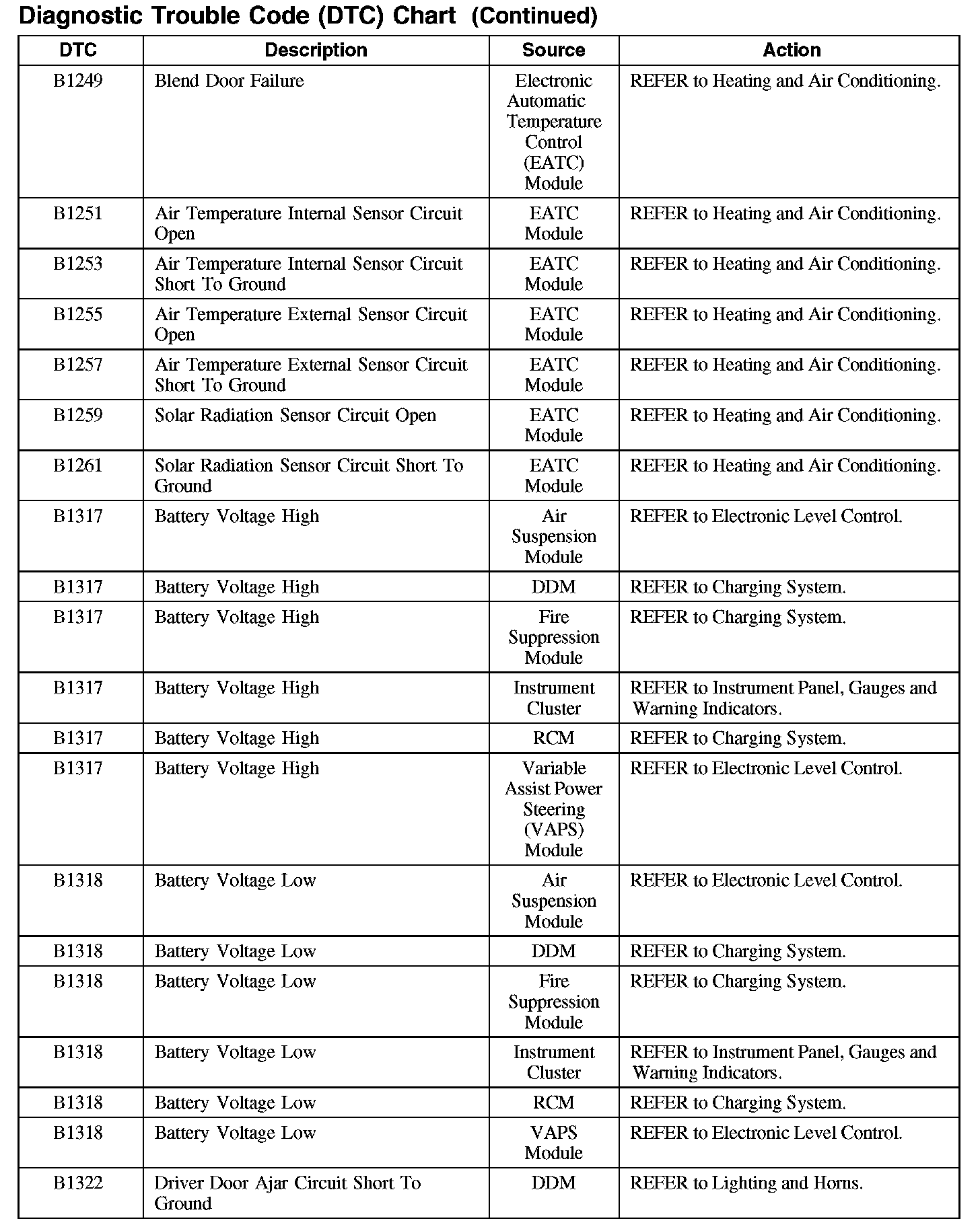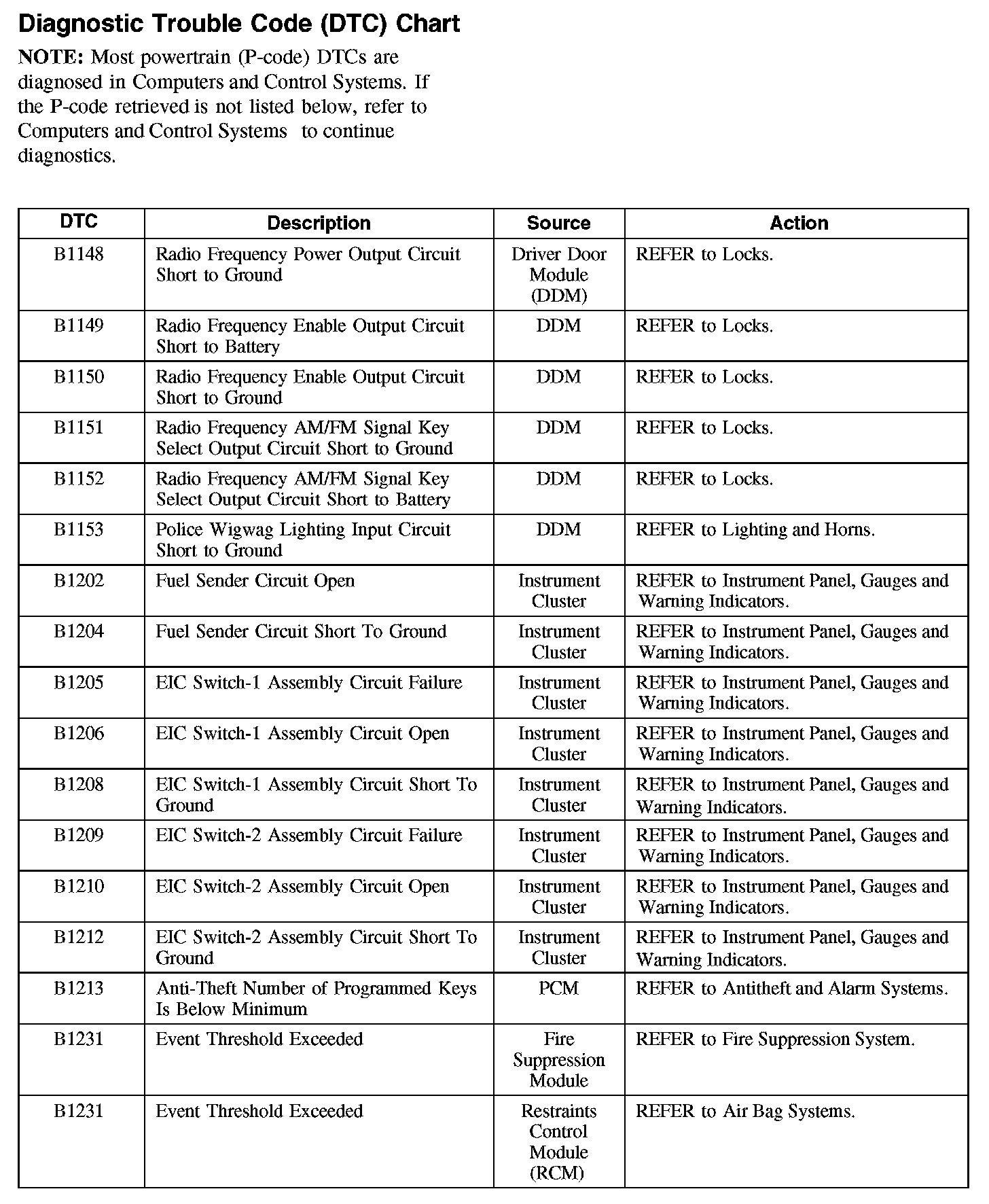 Diagnostic Trouble Code Descriptions