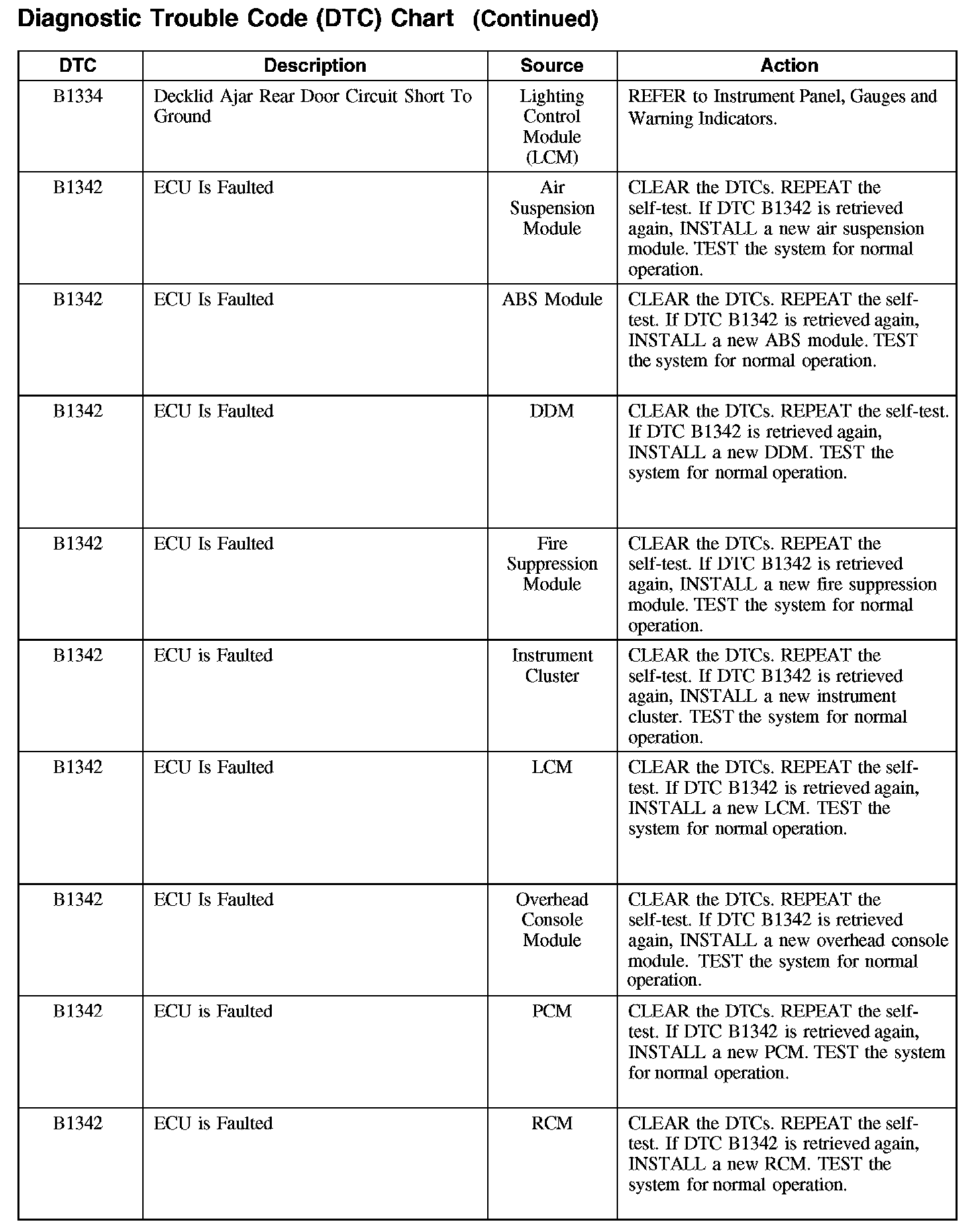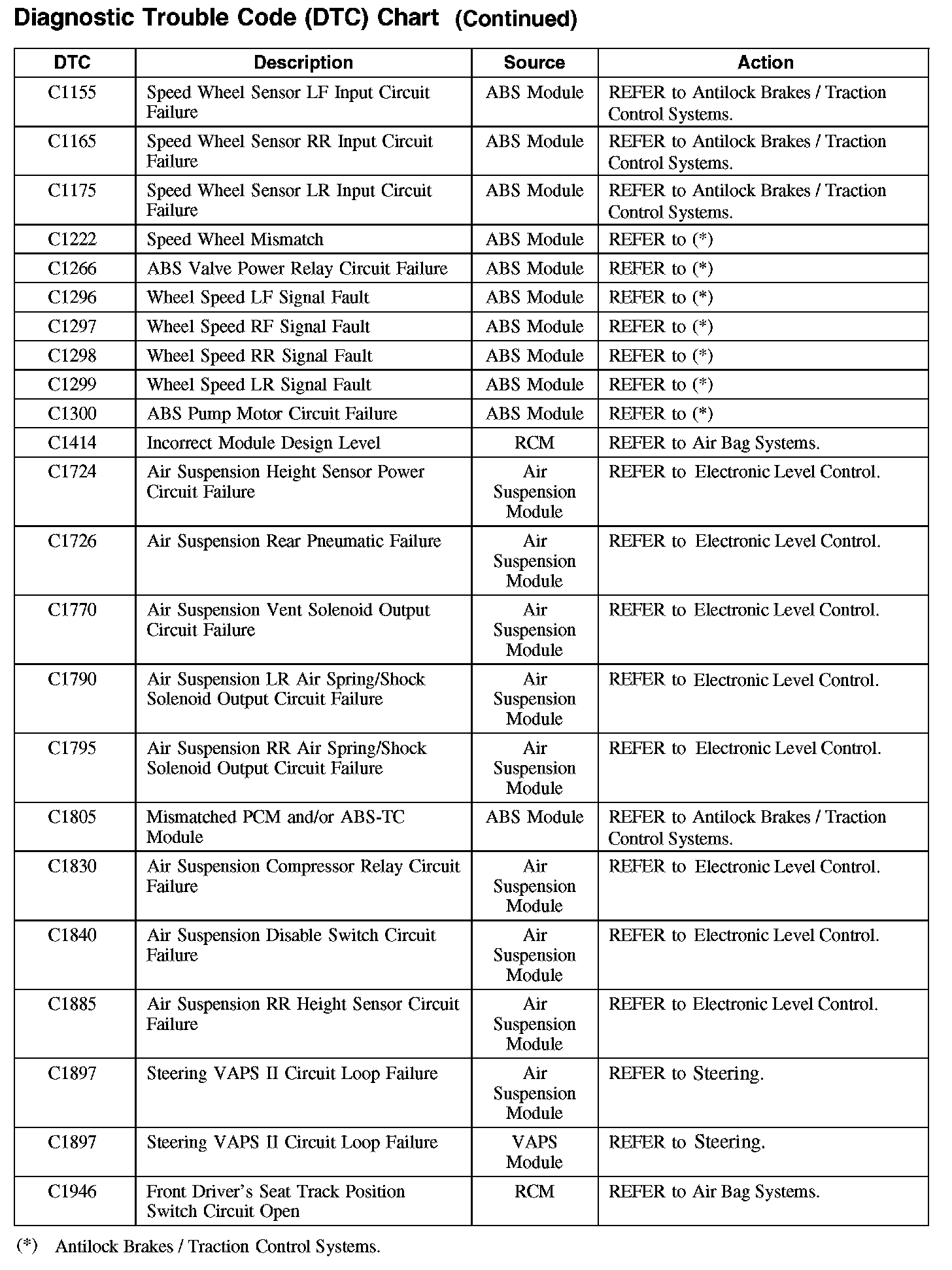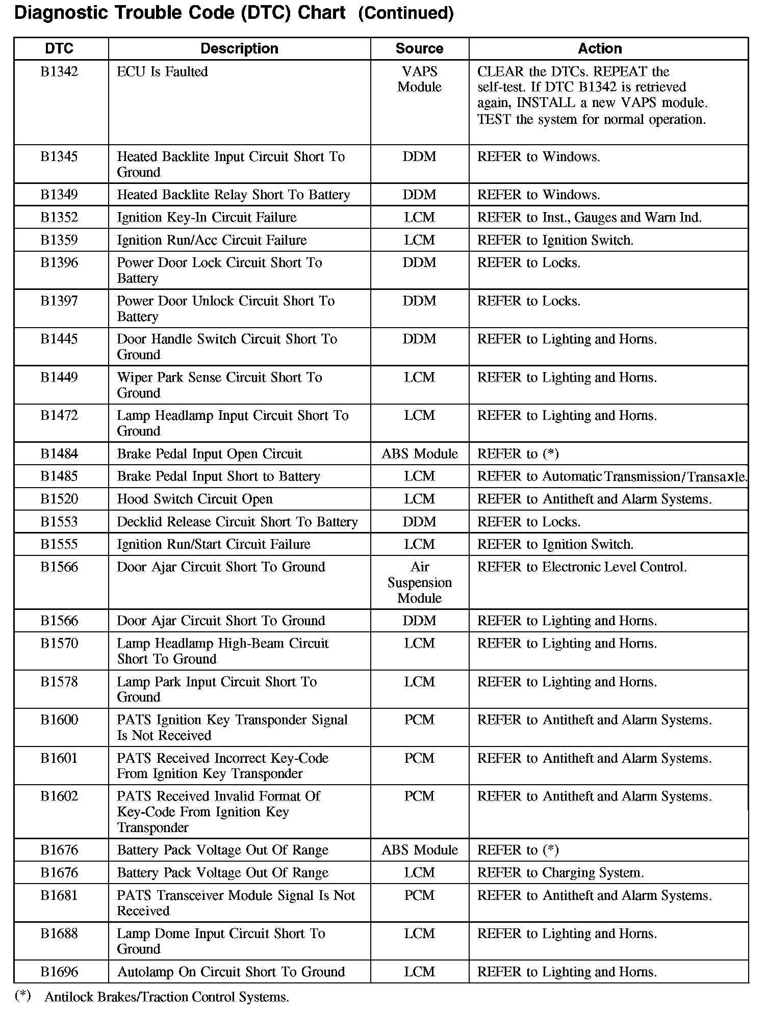 Diagnostic Trouble Code Descriptions