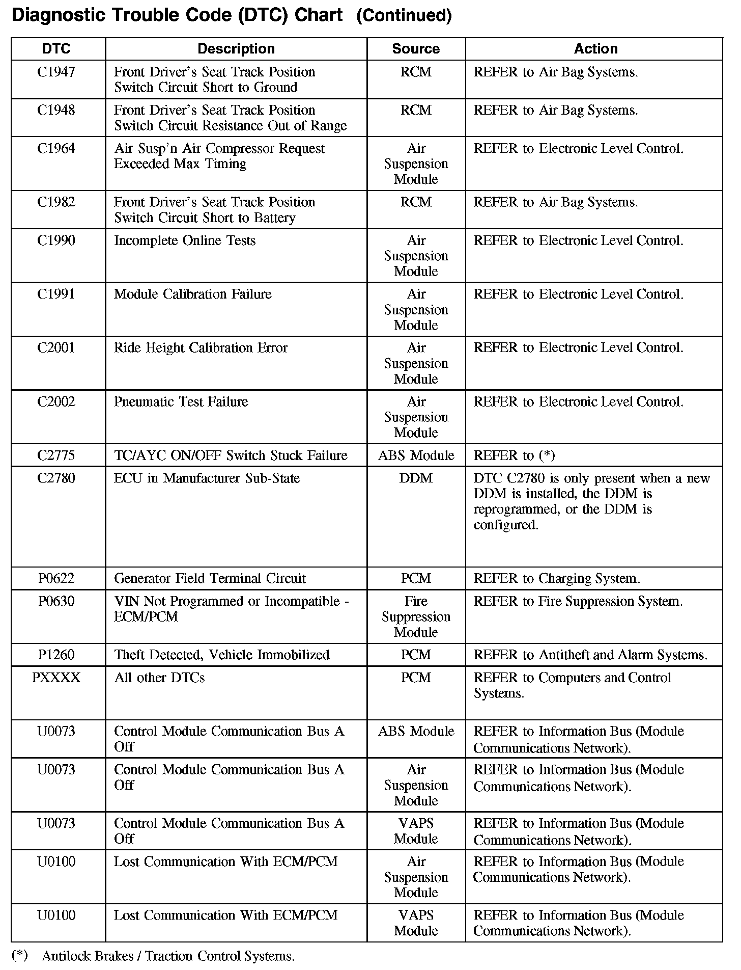 C1947-C2780 / P0622-P1260 / U0073-U0100: