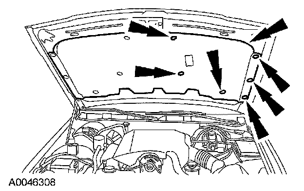 If equipped with an engine compartment lamp, remove the pin-type retainers and position the hood insulation aside.