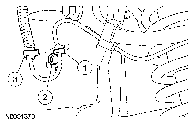 18. Release the brake line from the retaining clips at the rear of the No. 2 crossmember.