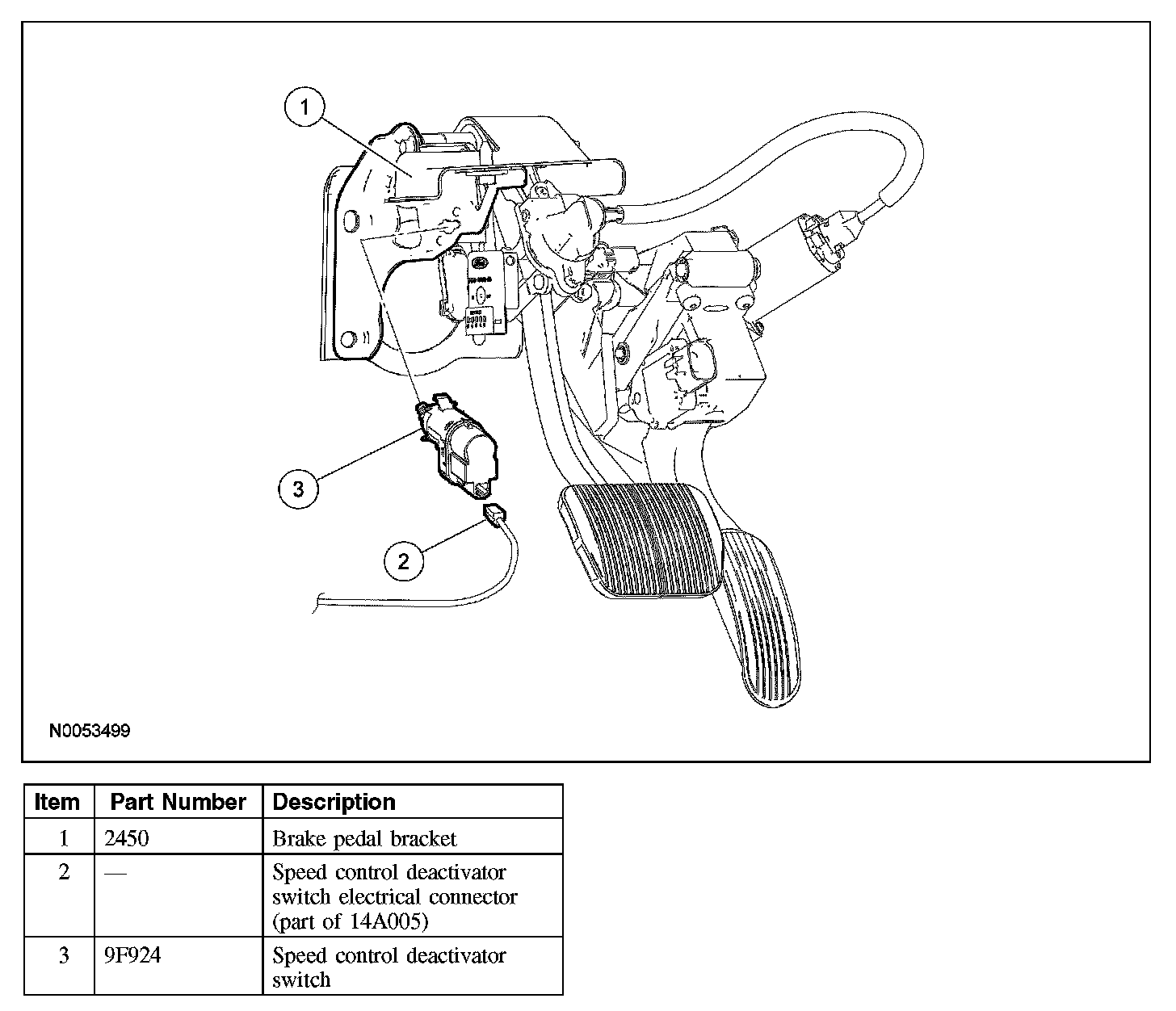 CAUTION: Do not press the pedal when removing or installing the speed control deactivator switch, as the switch will be damaged.