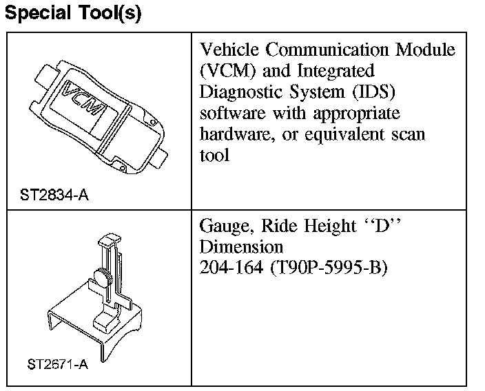 Ride Height AdjustmentsWARNING: Vent all air pressure from the air suspension system prior to disconnecting or removing any air suspension components. It is dangerous to remove air suspension components while under pressure. Failure to follow this instruction may result in serious personal injury.