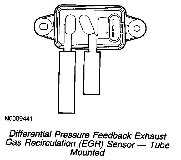 The orifice tube assembly is a section of tubing connecting the exhaust system to the intake manifold. The assembly provides the flow path for the EGR to the intake manifold and also contains the metering orifice and 2 pressure pick-up tubes. The internal metering orifice creates a measurable pressure drop across it as the EGR valve opens and closes. This pressure differential across the orifice is picked up by the differential pressure feedback EGR sensor which provides feedback to the PCM.