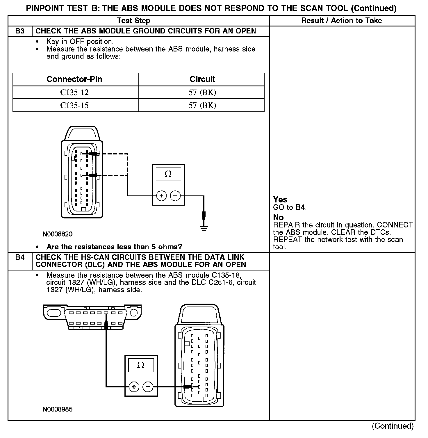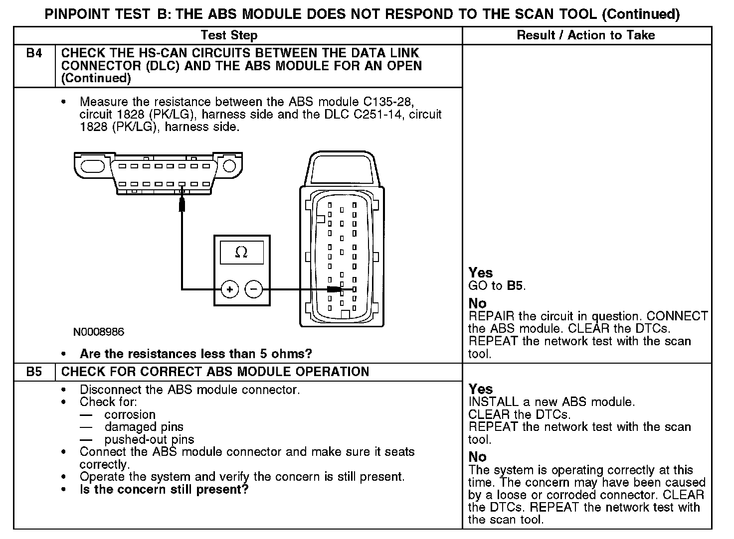 PINPOINT TEST B: THE ABS MODULE DOES NOT RESPOND TO THE SCAN TOOLNormal Operation