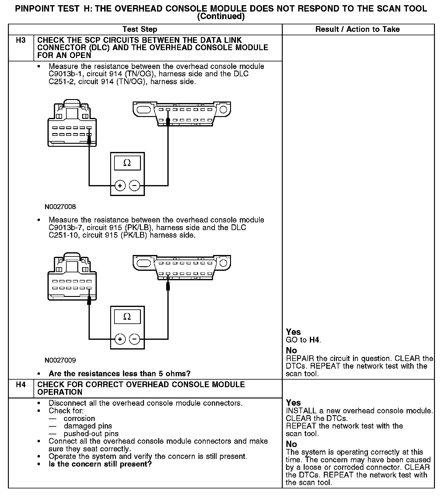 Test H: The Overhead Console Module Does Not Respond To The Scan Tool