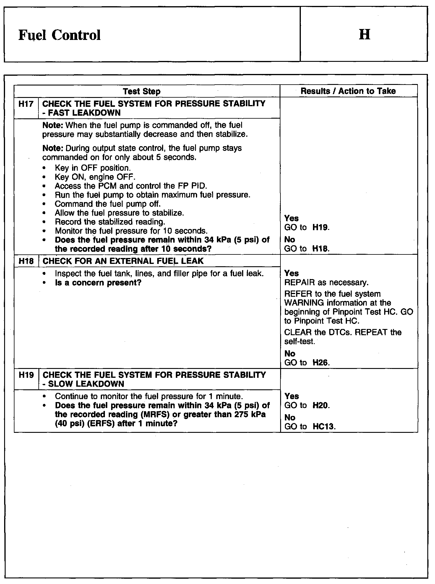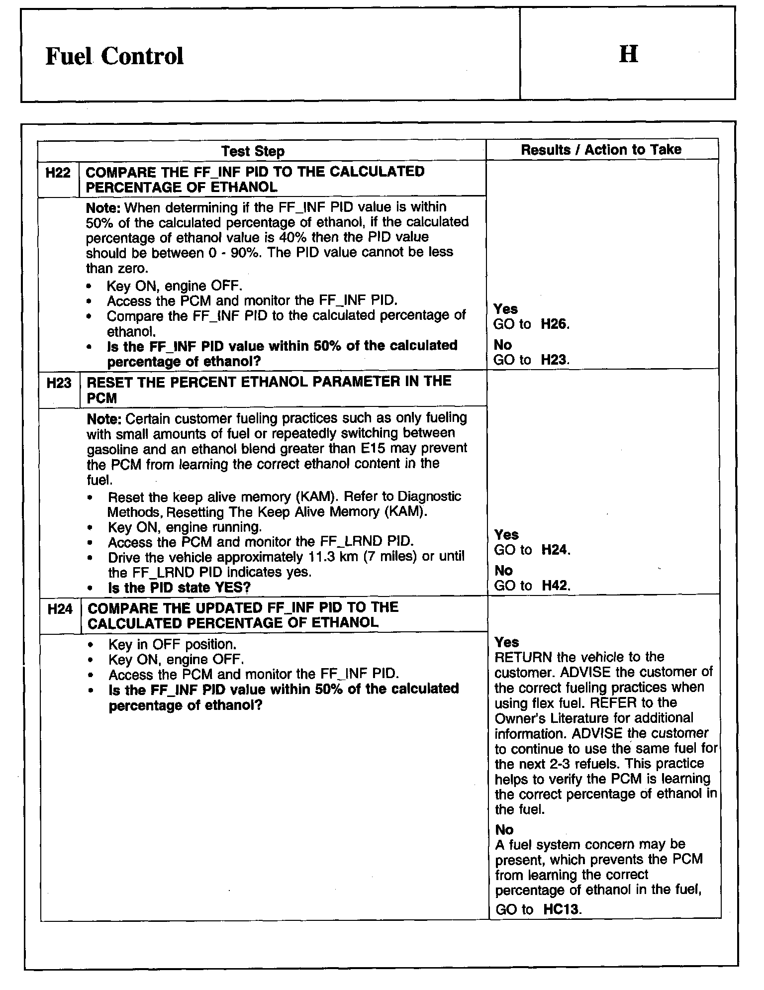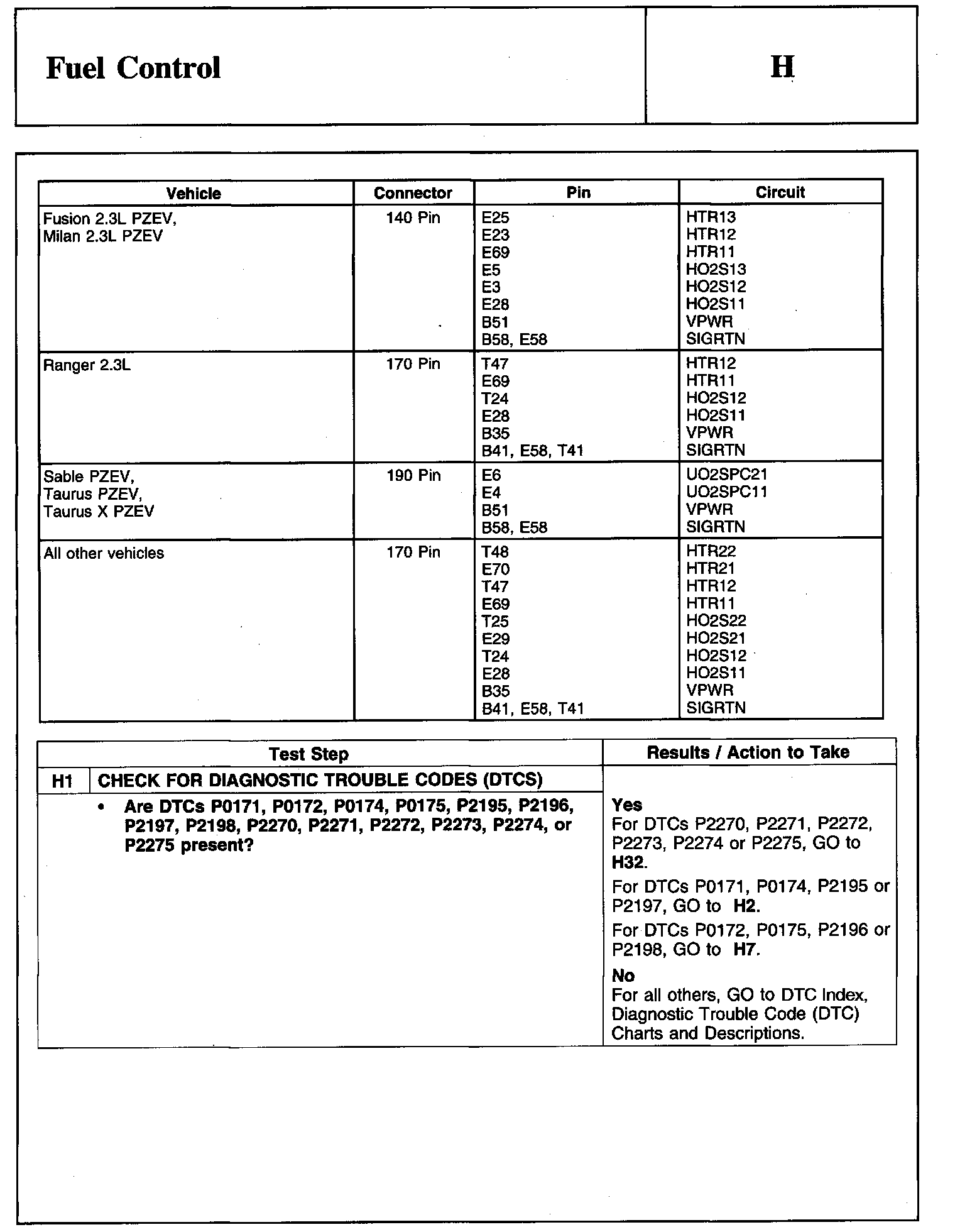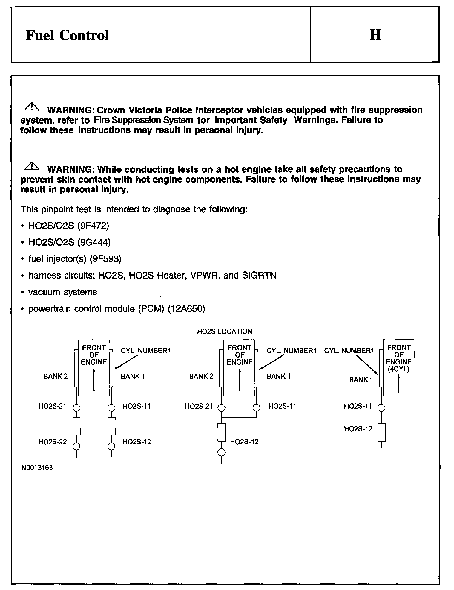 PINPOINT TEST H: FUEL CONTROLWarnings And Schematic: