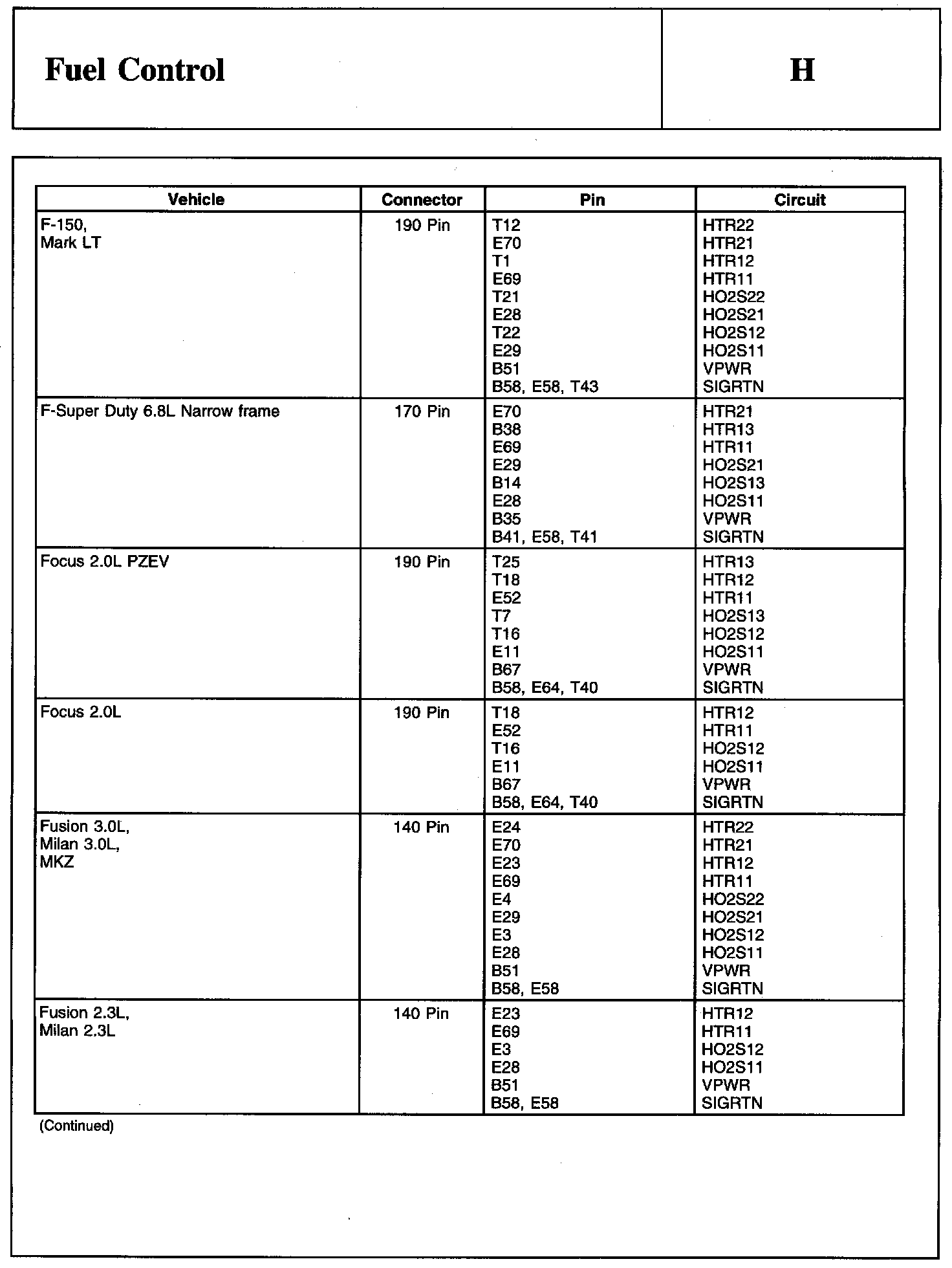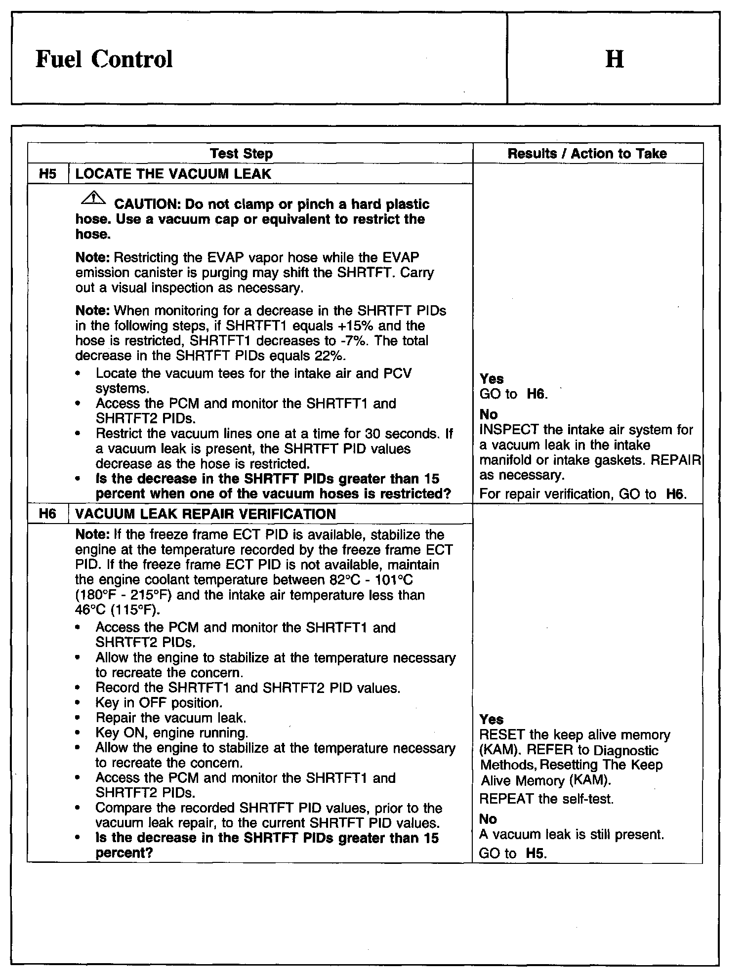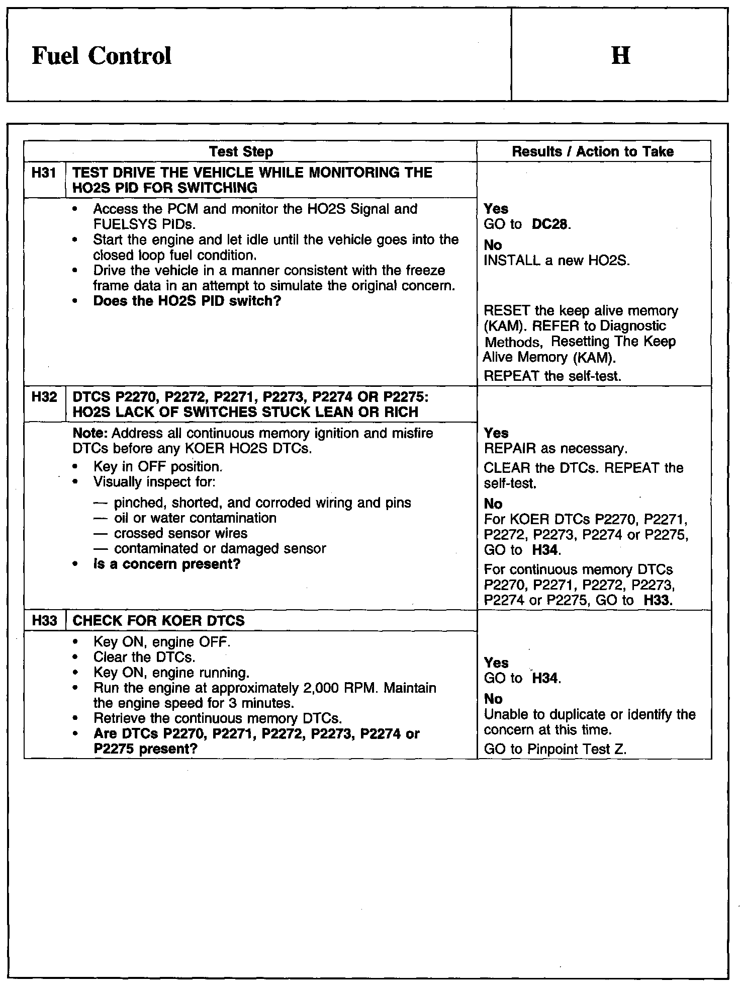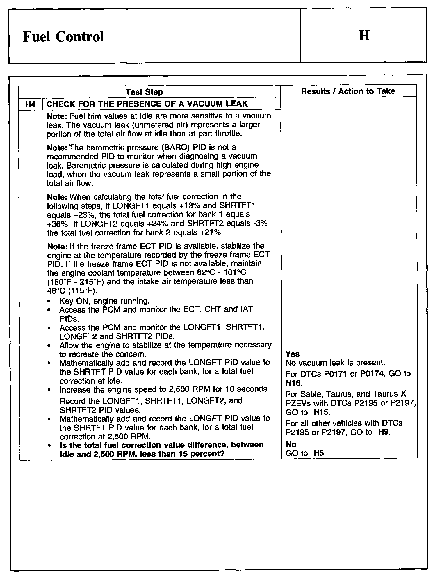 PINPOINT TEST H: FUEL CONTROLWarnings And Schematic: