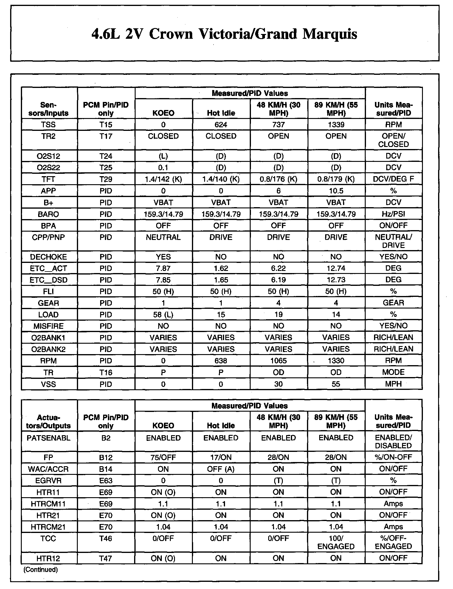 TYPICAL DIAGNOSTIC REFERENCE VALUES4.6L 2V Crown Victoria/Grand Marquis (Part 1):
