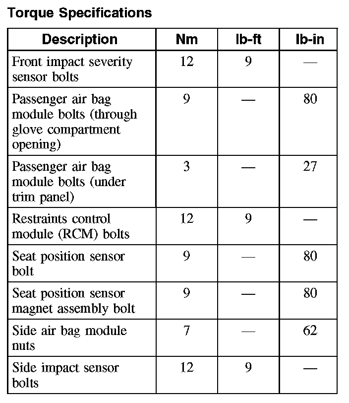 Torque Specifications: