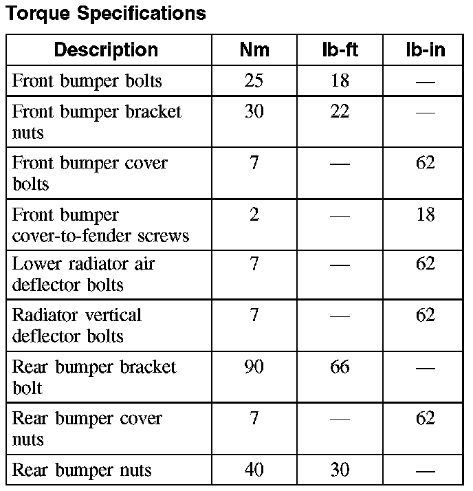 Torque Specifications: