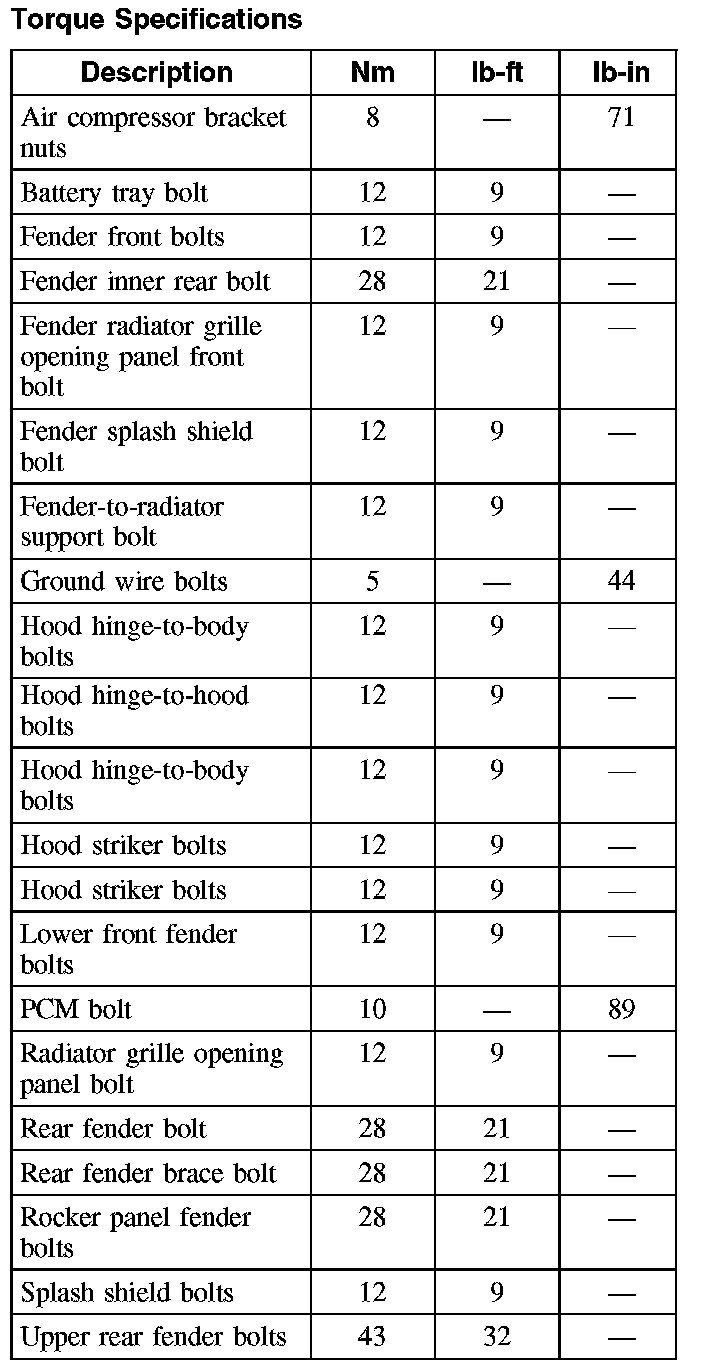 Torque Specifications: