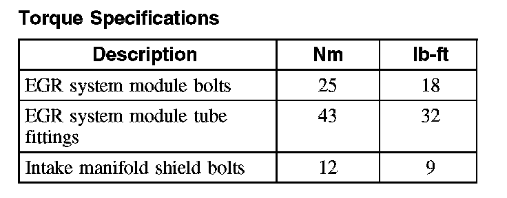 Torque Specifications: