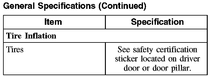 General SpecificationsCAUTION: Use only special tool 204-354 anytime tire pressures are measured to be sure that accurate values are obtained.