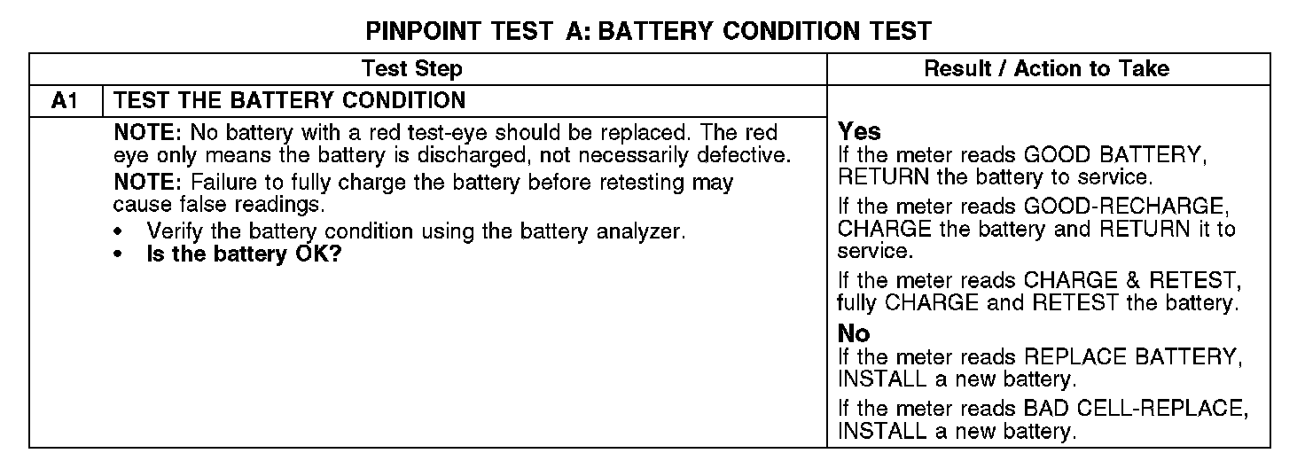 PINPOINT TEST A: BATTERY CONDITION TESTNormal Operation