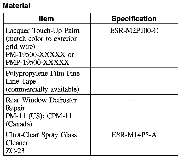 - If the brown layer is not broken or missing, apply only the silver grid repair compound to the break. If both the brown and silver layers of the grid are broken or missing, apply a coating of the lacquer touch up paint across the break in the grid line prior to applying the rear window defroster repair compound. Do not overlap the silver grid line with the paint. Several applications may be necessary to achieve a color match.