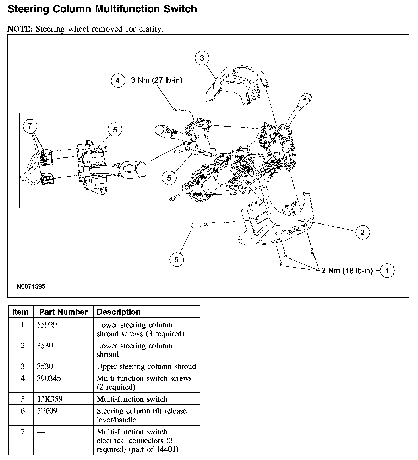 Steering Column Multifunction SwitchNOTE: Steering wheel removed for clarity.
