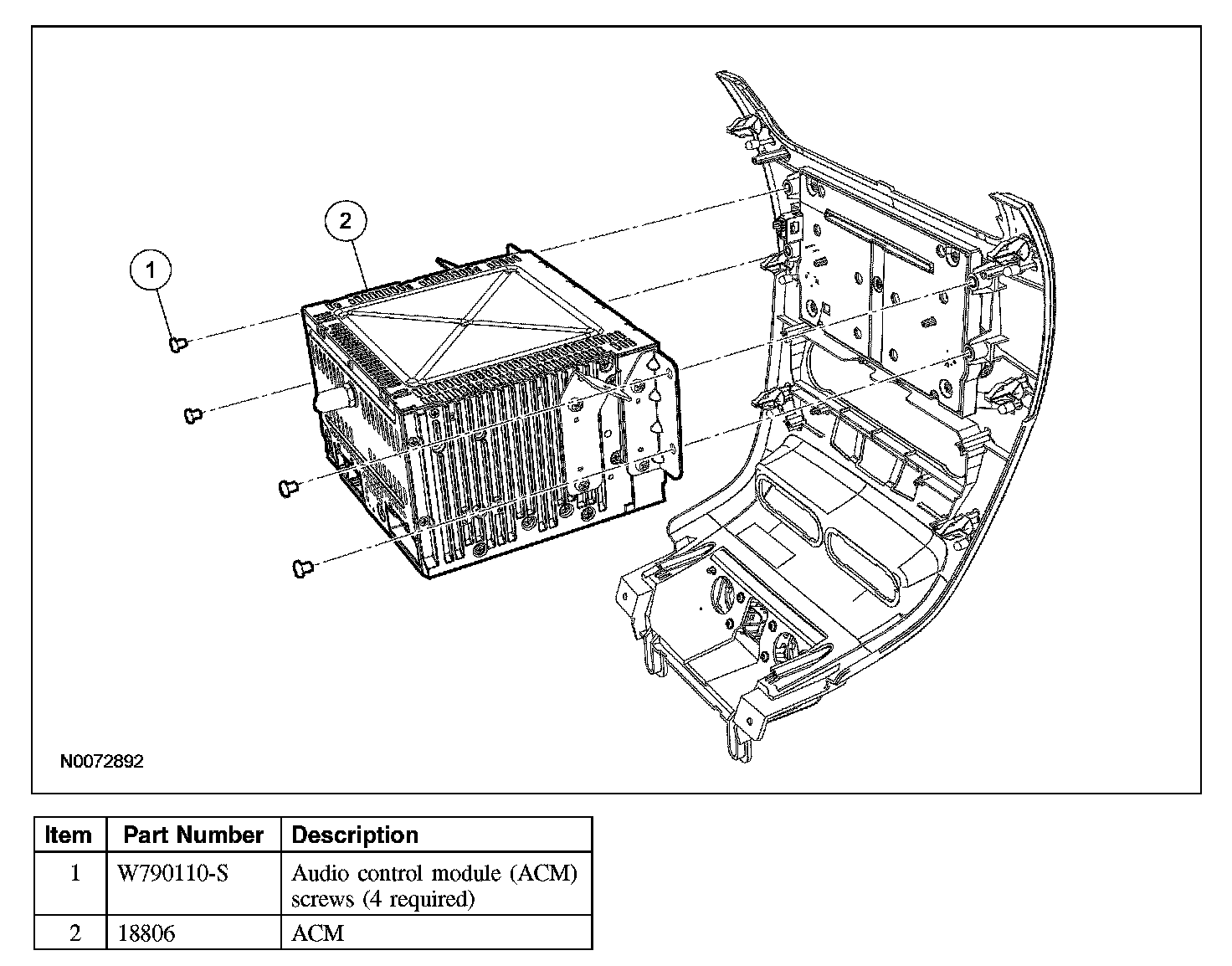 Remove the 4 audio control module (ACM) screws and remove the ACM.