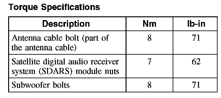 Torque Specifications: