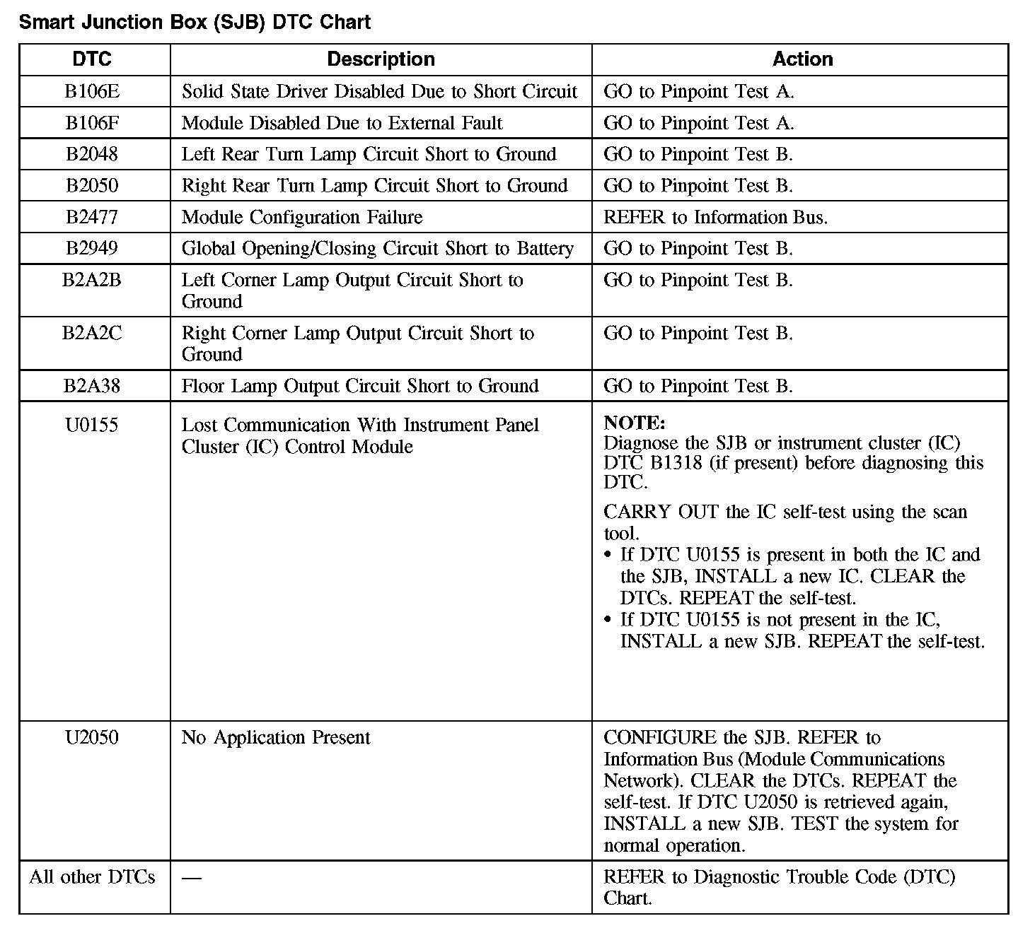 Smart Junction Box (SJB) DTC Chart