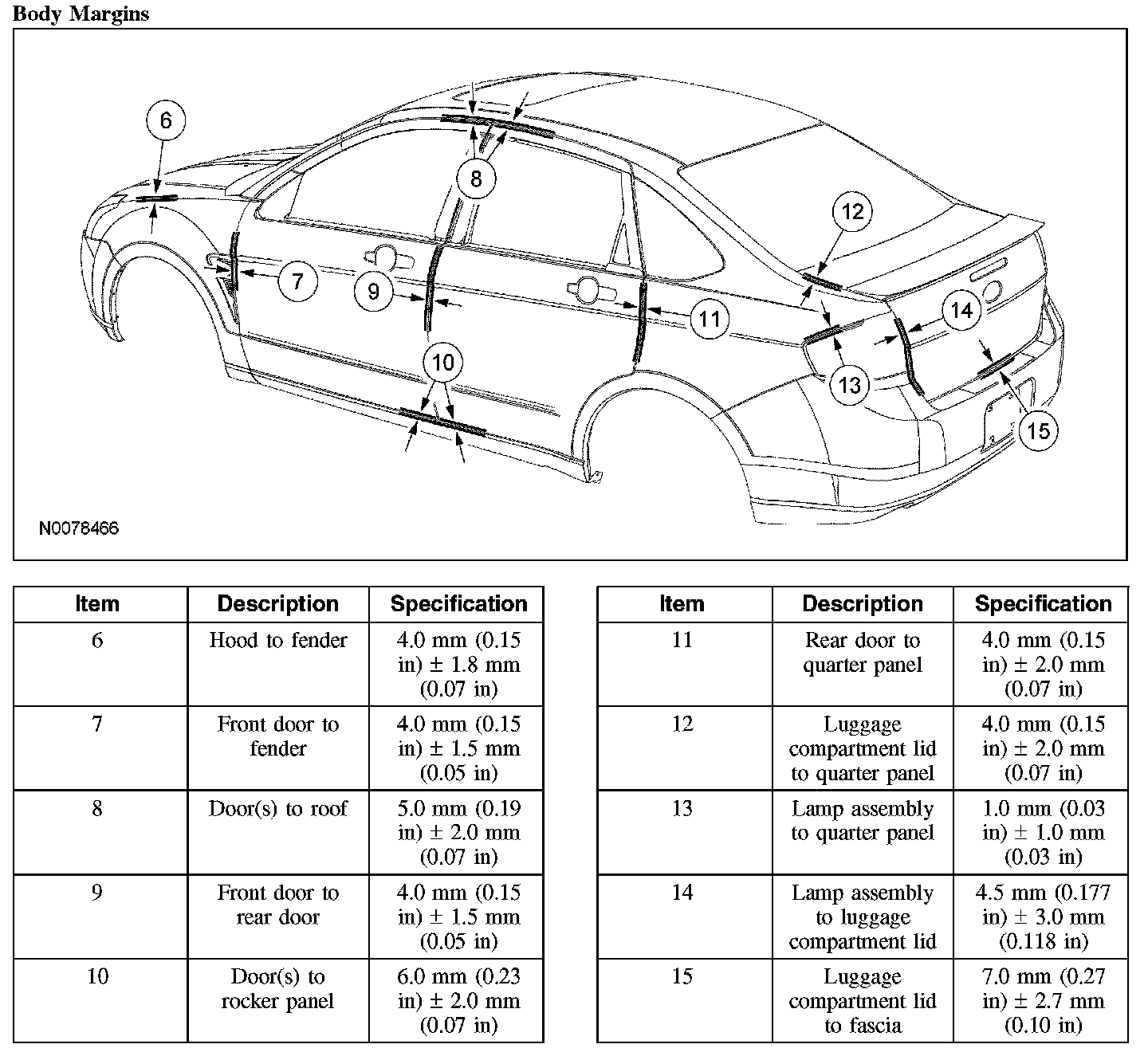 Body Side Closure Dimensions - 4-Door Sedan: