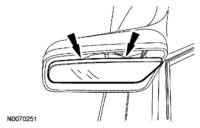 2. WARNING: Place a shop towel between the hands and the exterior mirror glass for protection in case of glass breakage during mirror service. Failure to follow this instruction may result in serious personal injury.