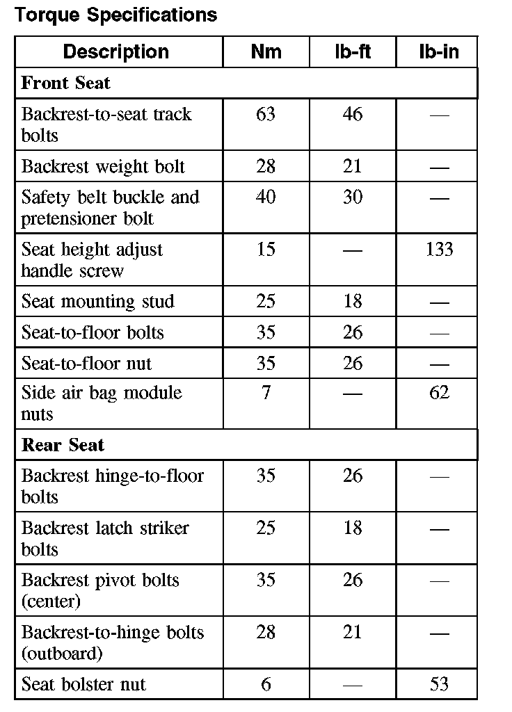 Torque Specifications: