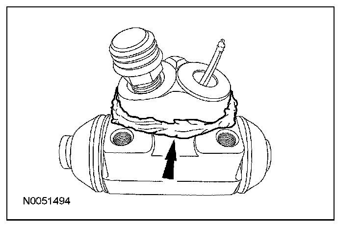 7. NOTE: Prior to installing the wheel cylinder, apply a bead of the specified sealant to the wheel cylinder as shown.