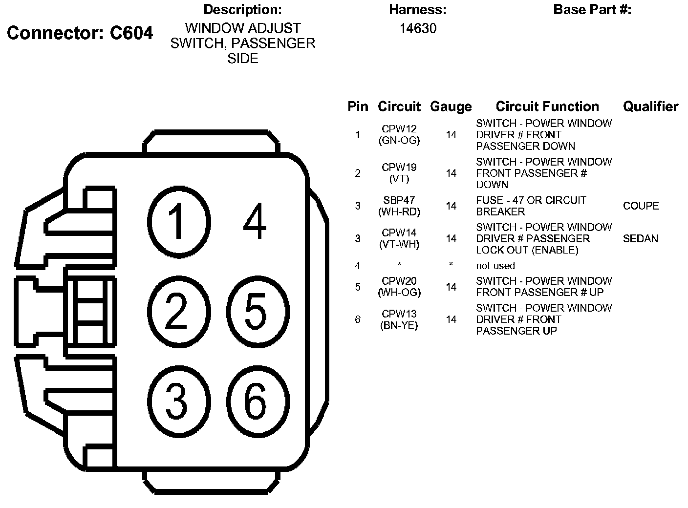 Window Adjust Switch, Passenger Side