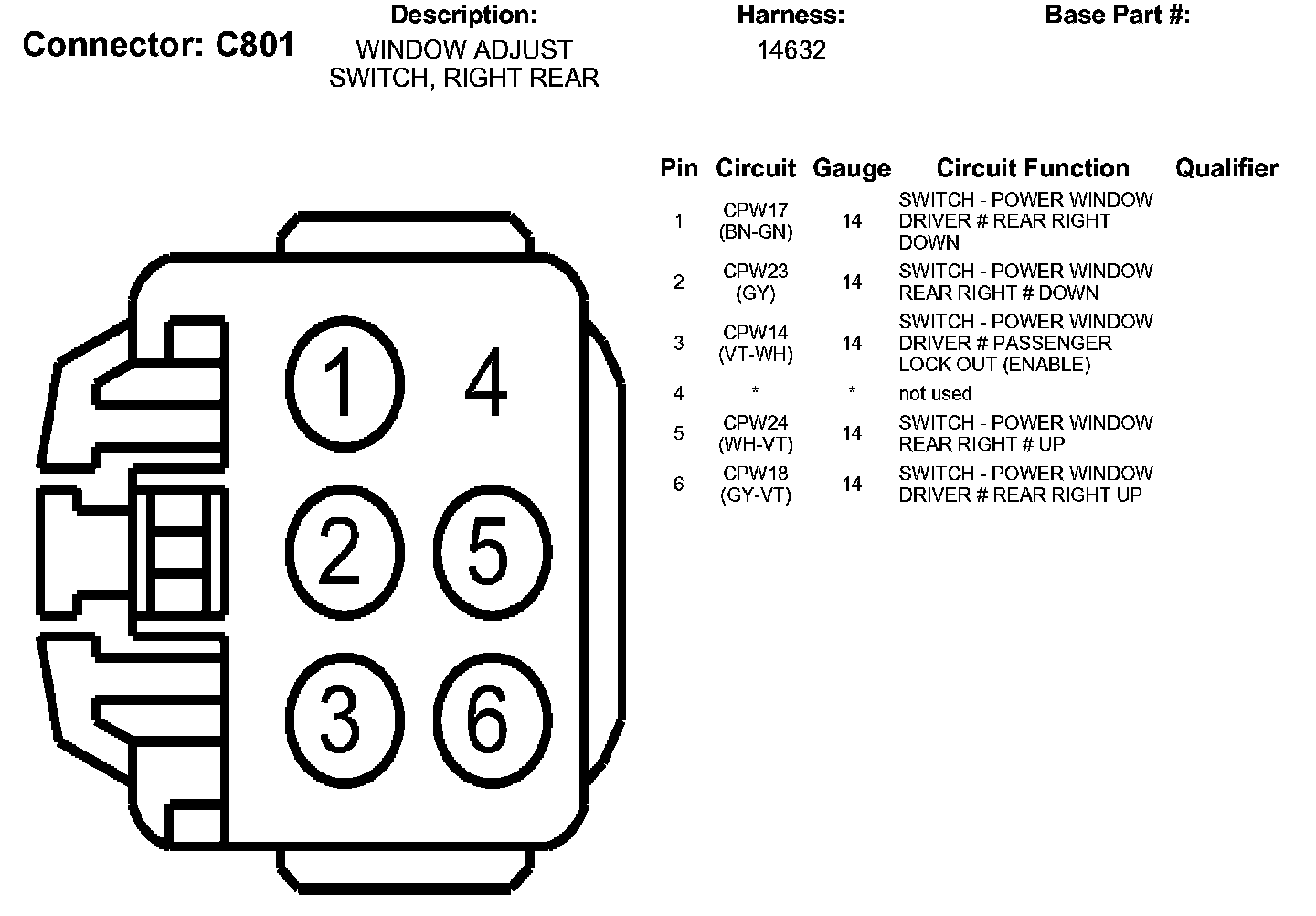 Window Adjust Switch, Right Rear