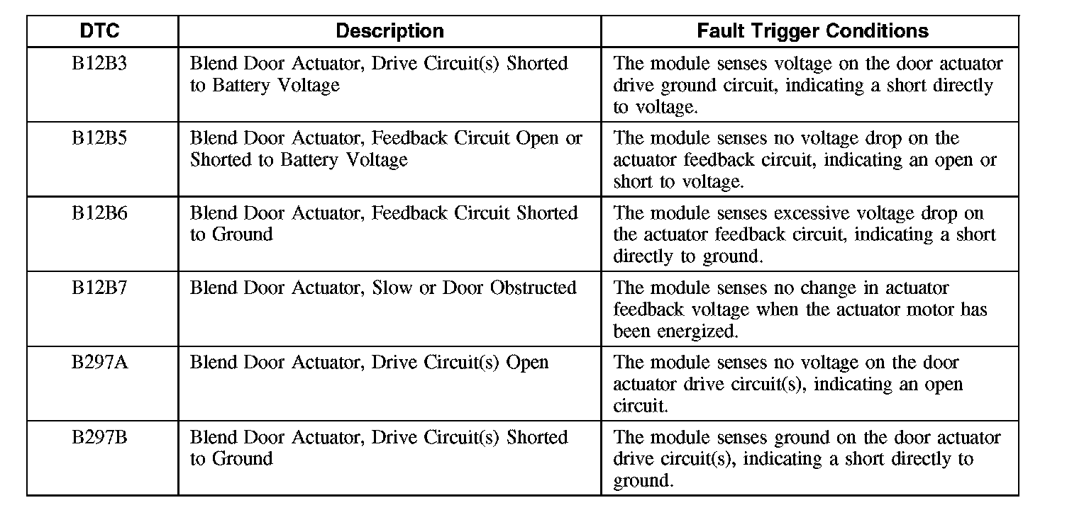 Under normal operation, to rotate the blend door actuator clockwise, the HVAC module supplies voltage to the blend door actuator motor through circuit CH233 (VT/BN), and supplies ground through circuit CH234 (YE/GN). To rotate the blend door actuator counterclockwise, the HVAC module reverses the voltage and ground circuits.