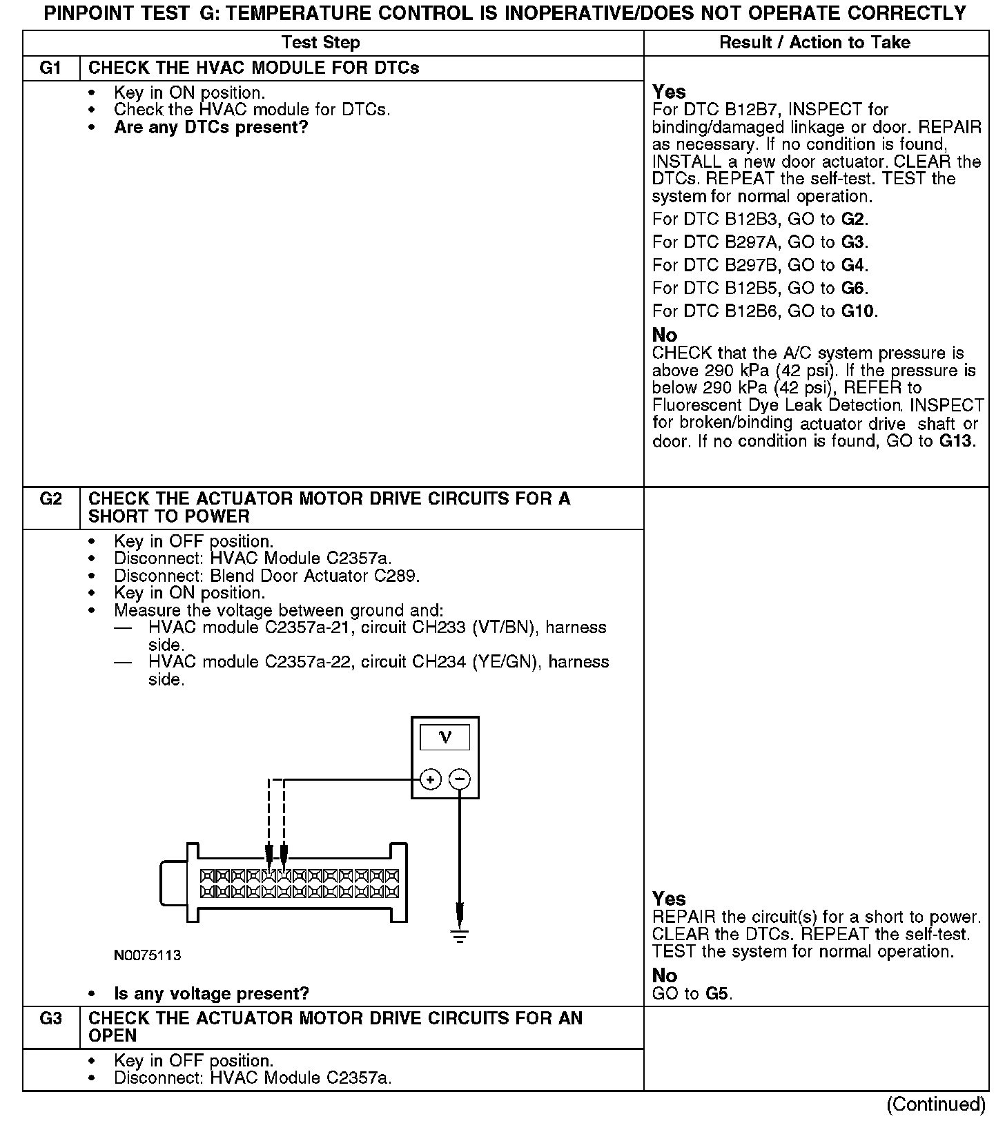 PINPOINT TEST G: TEMPERATURE CONTROL IS INOPERATIVE/DOES NOT OPERATE CORRECTLYNormal Operation