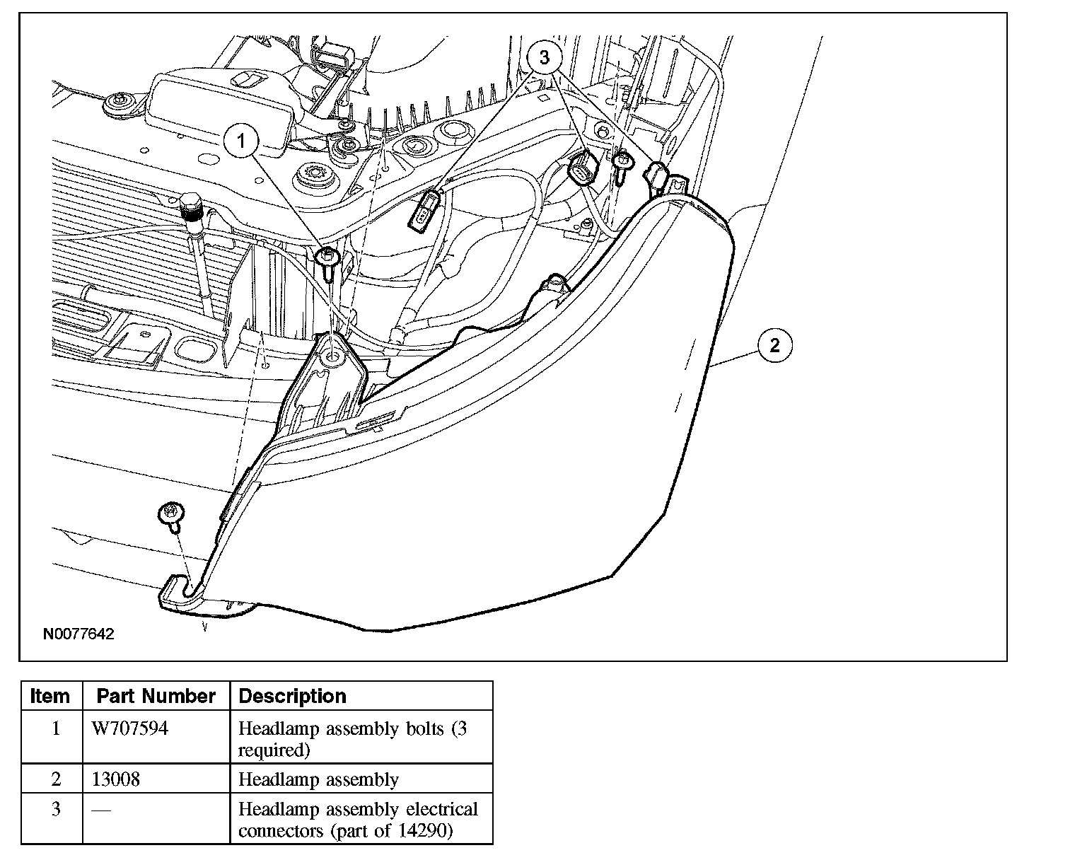 2. NOTE: There is a blind metal snap located on the lower outboard side of the headlamp assembly that is disengaged by pulling upwards on the headlamp assembly.