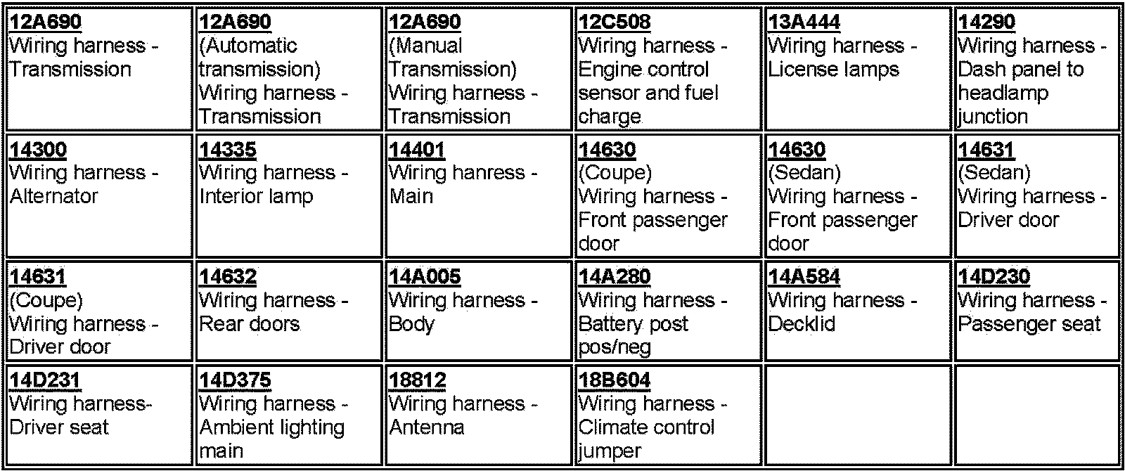 Harnesses Index