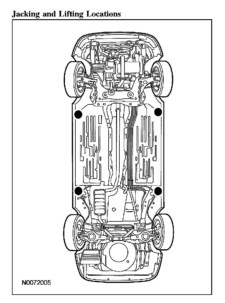 CAUTION: It is not recommended that the vehicle is jacked or lifted on the rear suspension crossmember. If the vehicle must be lifted on the crossmember, make sure that the jack or lift is positioned centrally. Failure to follow these instructions will result in deformation of the closing plate which will weaken the crossmember.