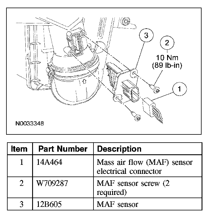 3. Remove the 2 MAF sensor retaining screws and the MAF sensor.