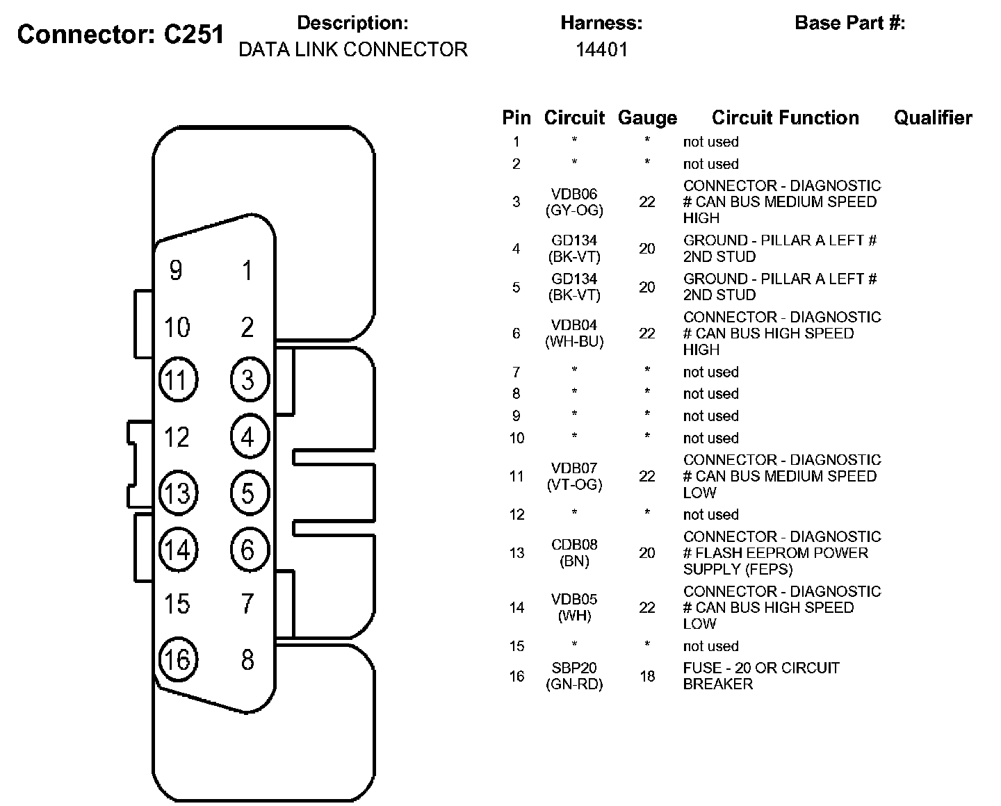 Data Link Connector: Diagrams