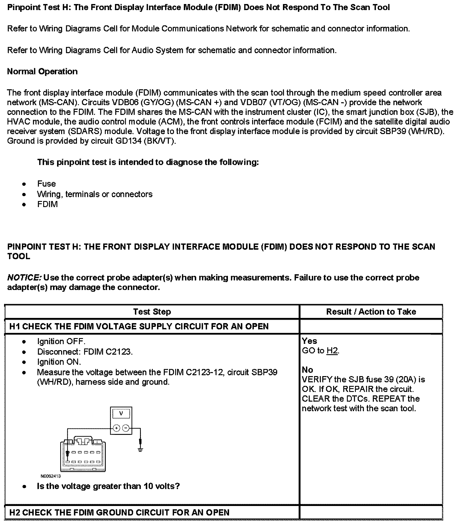 Pinpoint Test H: The Front Display Interface Module (FDIM) Does Not Respond To The Scan Tool