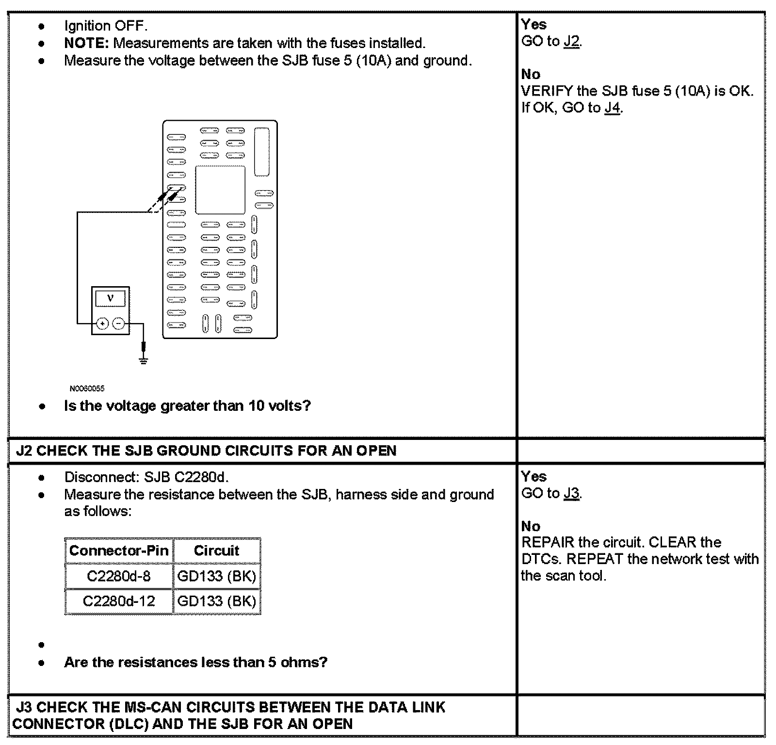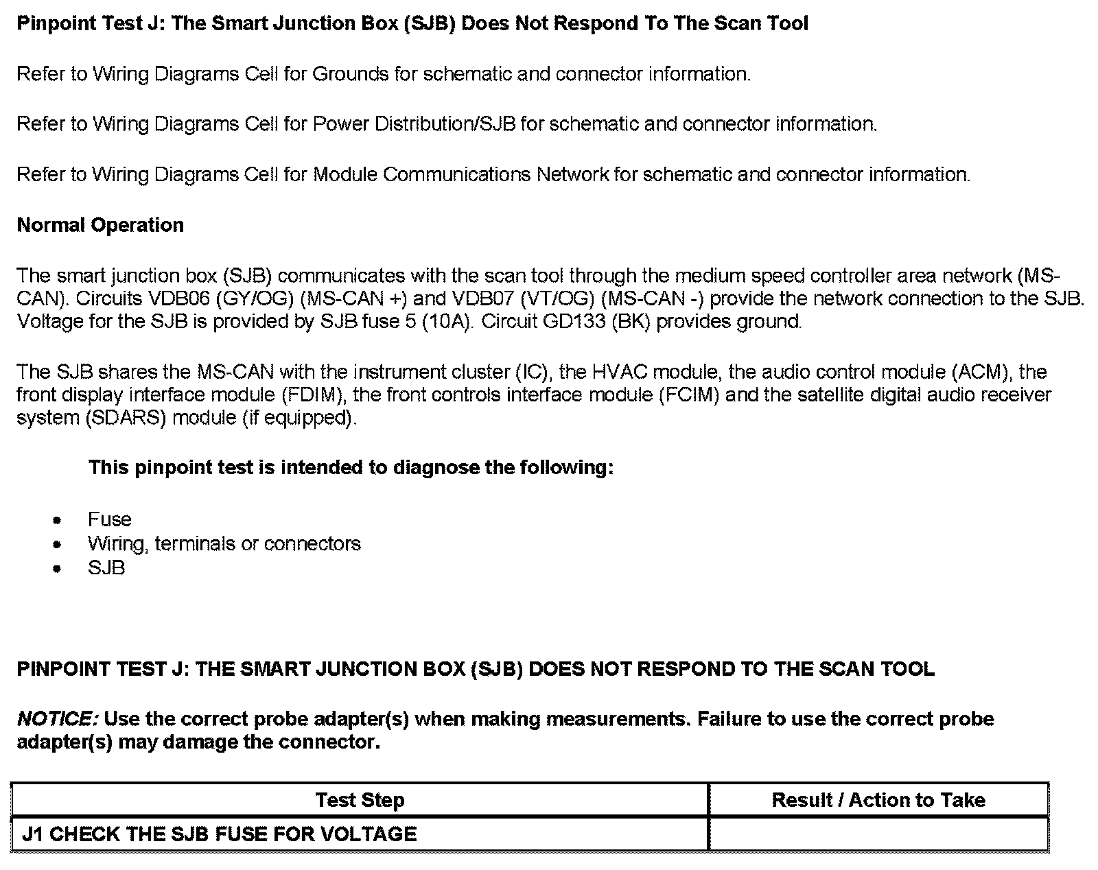 Pinpoint Test J: The Smart Junction Box (SJB) Does Not Respond To The Scan Tool
