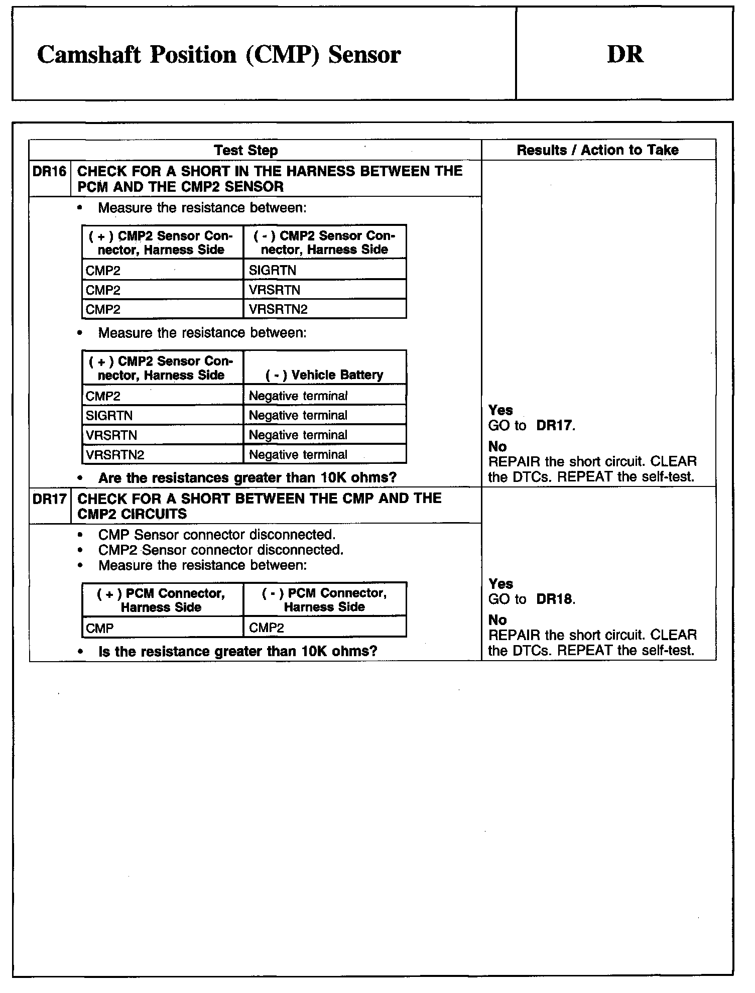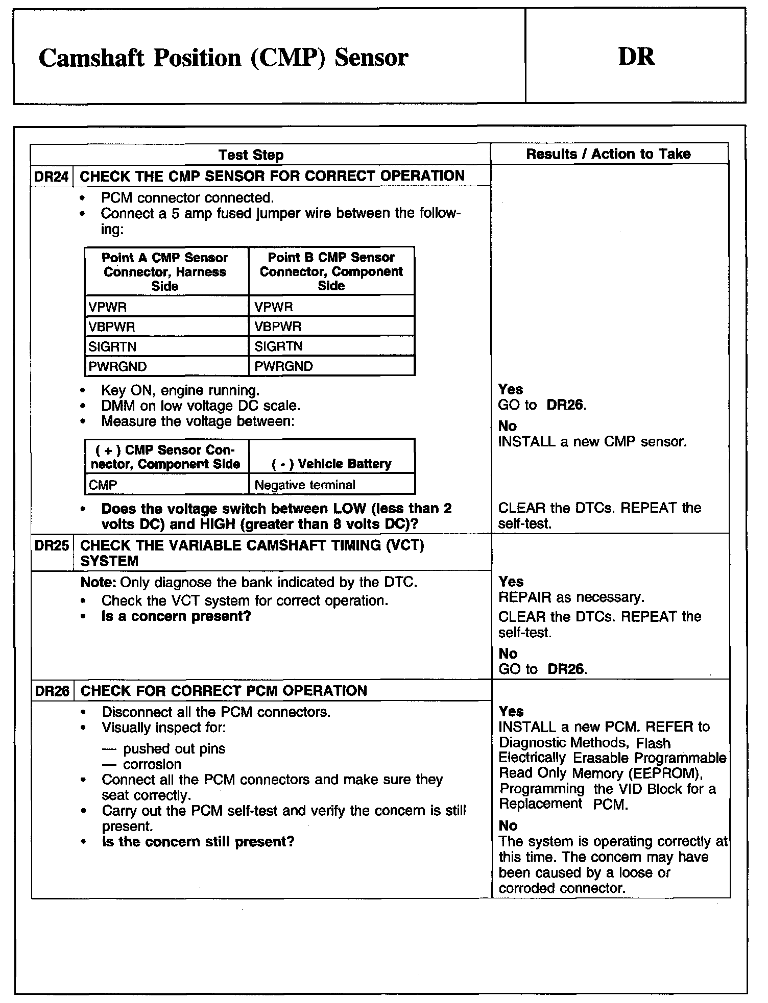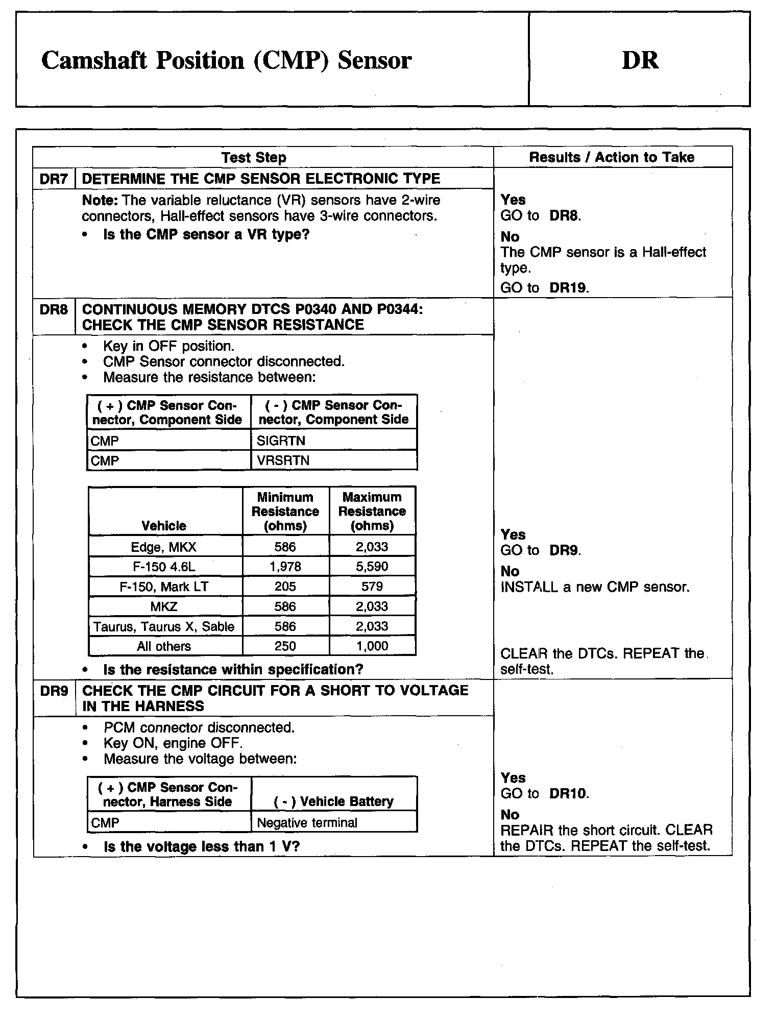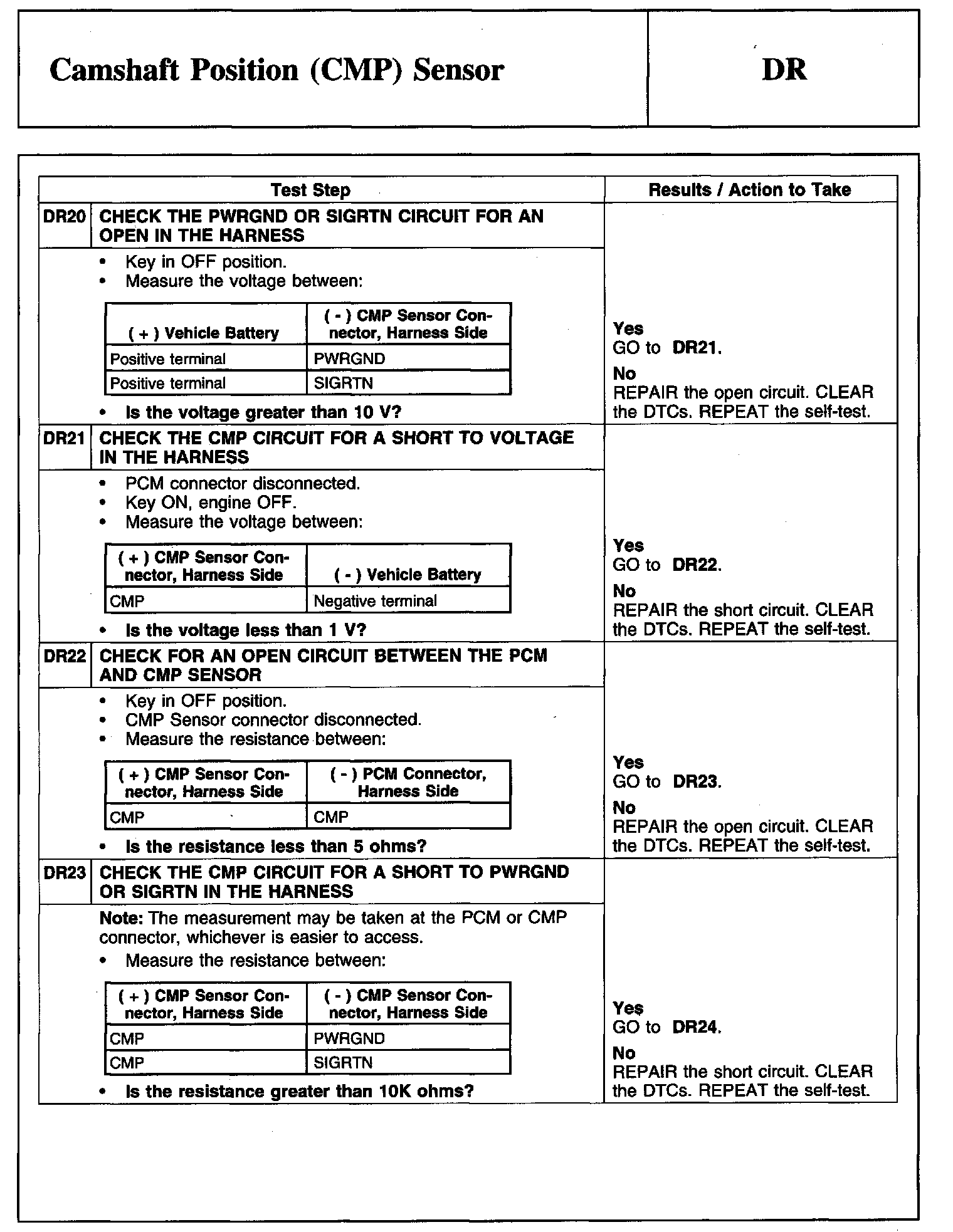 PINPOINT TEST DR: CAMSHAFT POSITION (CMP) SENSORDescription And Camshaft Position (CMP) Sensor Connector: