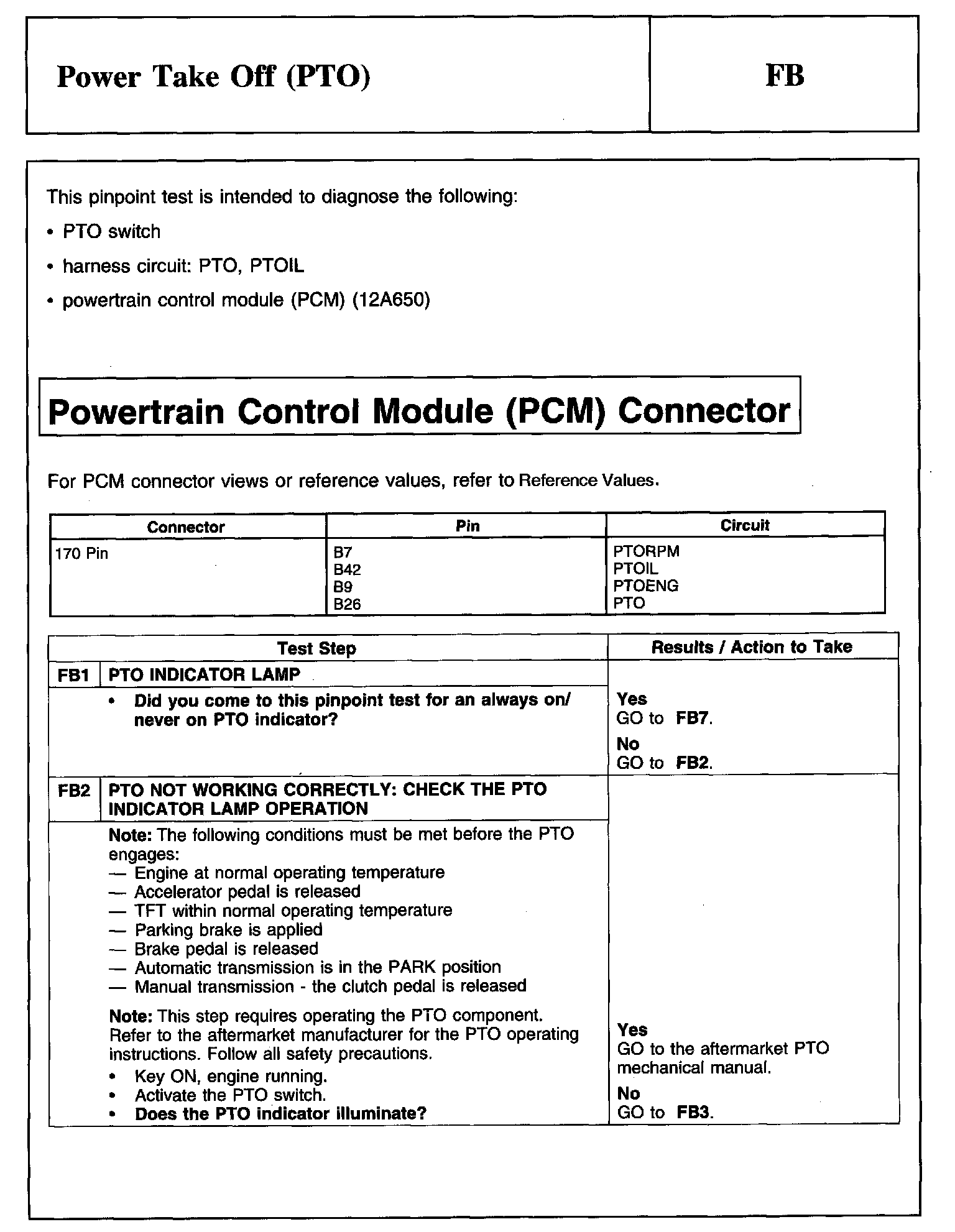 PINPOINT TEST FB: POWER TAKE OFF (PTO)