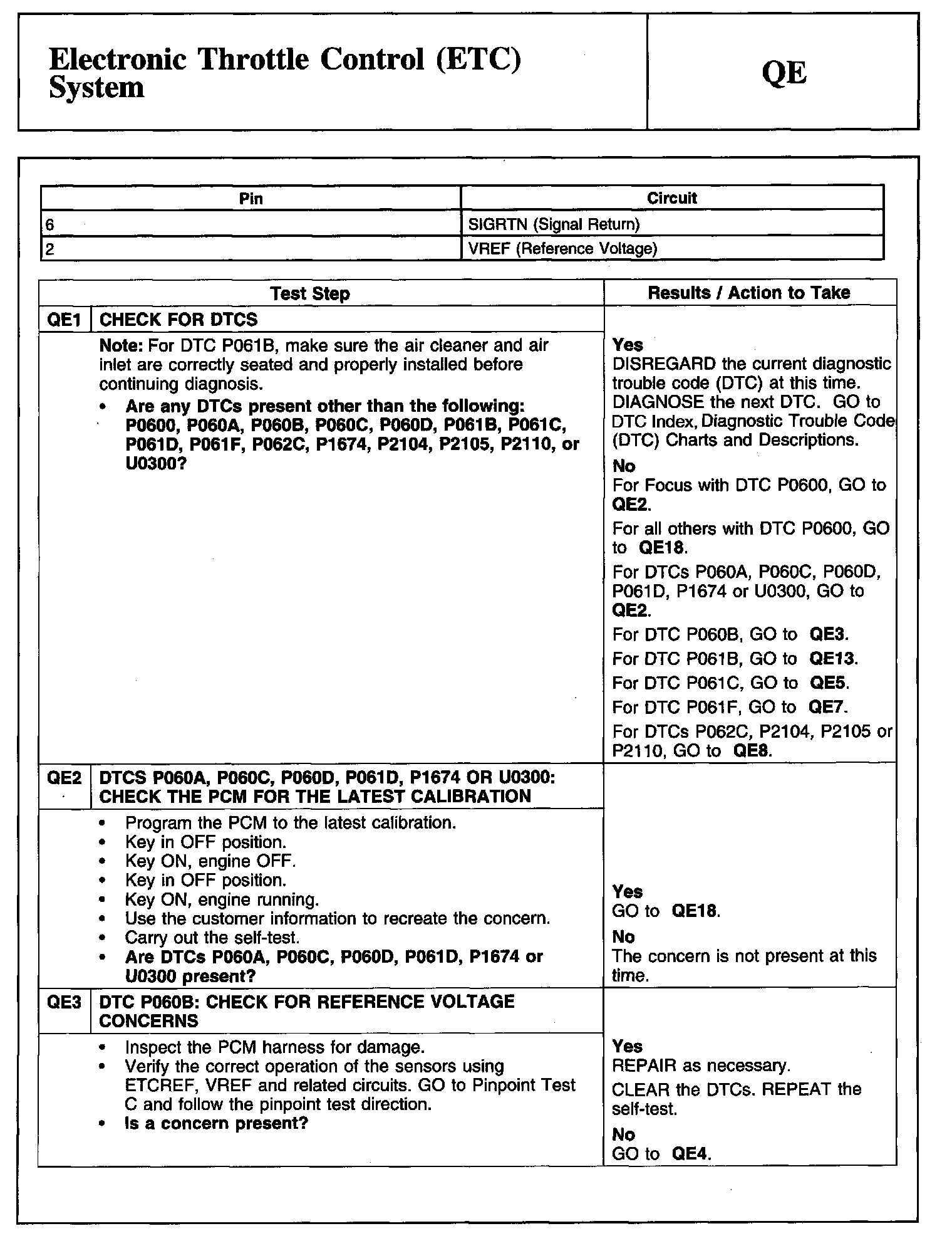 PINPOINT TEST QE: ELECTRONIC THROTTLE CONTROL (ETC) SYSTEM