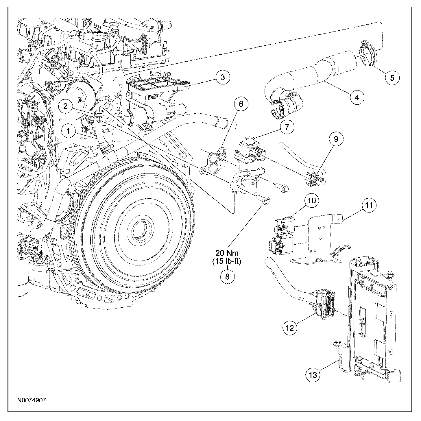 9. CAUTION: Do not use metal scrapers, wire brushes, power abrasive discs or other abrasive means to clean the sealing surfaces. These tools cause scratches and gouges that make leak paths. Use a plastic scraping tool to remove all traces of the exhaust gas recirculation (EGR) valve gasket.
