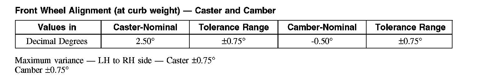 Front Wheel Alignment (at curb weight) - Caster and Camber