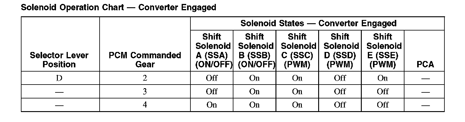 Solenoid Operation Chart - Converter Engaged