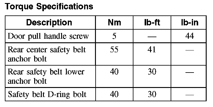 Torque Specifications: