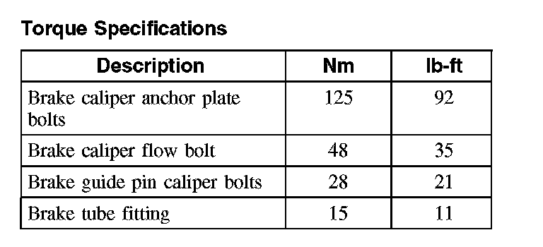 Torque Specifications, Front