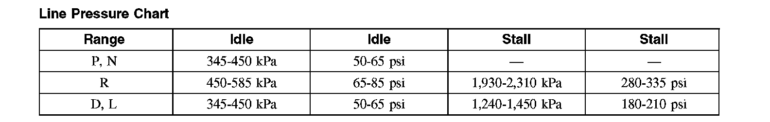 Line Pressure Chart: